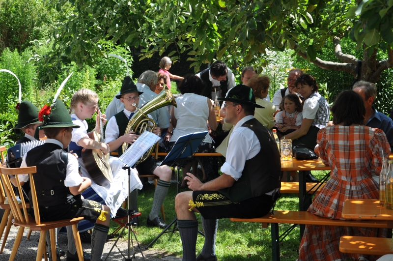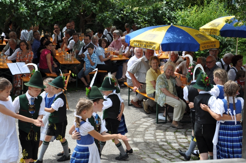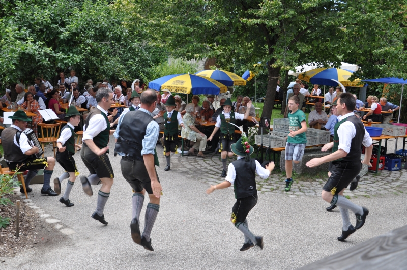 Auch gab es ein buntes und unterhaltsames Programm. Zum Beispiel boten die Trachtler einige Tänze dar und die Tanzlmusi um Christian Riederer spielte ein paar schneidige Stückl auf. Mit den Pfadfindern konnten sich die Kinder außerdem Stockbrote auf dem Lagerfeuer backen und auch auf einer Slackline herumhüpfen. Gefragt war ferner das Kinderschminken auf der Veranda des Pfarrhofes. Zur Unterhaltung spielte die Familienmusik Wallner.