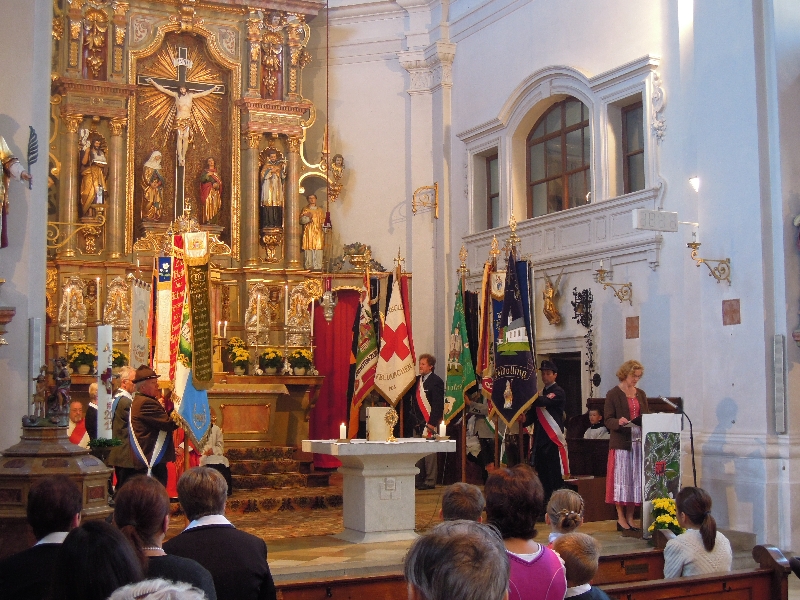 Zum Abschluss des Gottesdienstes gratulierte im Namen der Pfarrei Pfarrgemeinderatsvorsitzende Angelika Röhrmoser und im Namen der politischen Gemeinde 2. Bürgermeisterin Ursula Borkenhagen und überbrachten Geschenke.