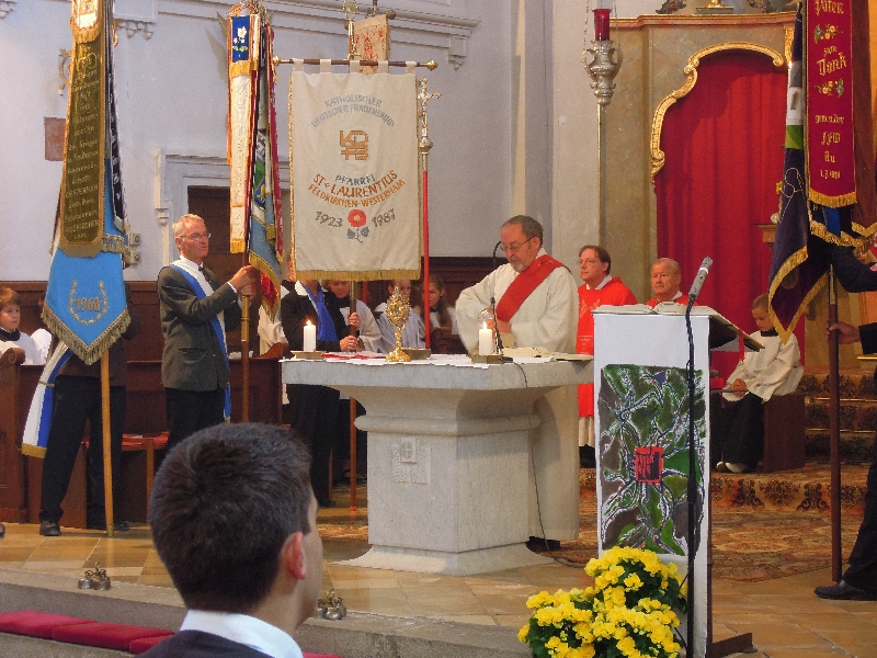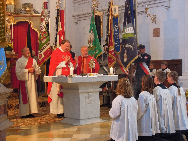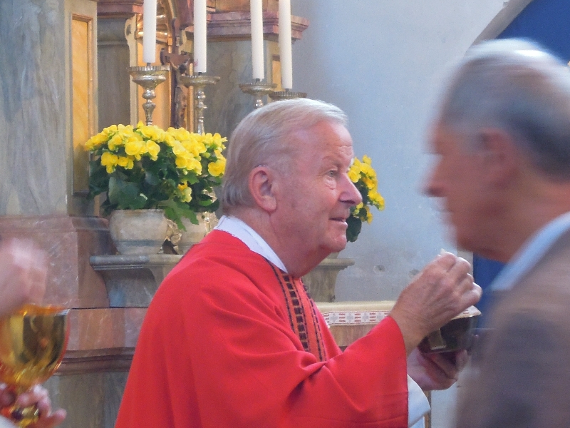Der Festgottesdienst wurde zu diesem Anlass zelebriert von Pater Franz Samper OT und Pfarrer Matthias Bartl und diakoniert von Diakon Jürgen Hennes. Der Kirchenchor brachte die Schubertmesse in G-dur zur Aufführung. In seiner Predigt ging Pater Franz auf das Leben und Wirken den heiligen Diakons Laurentius ein, dessen aufopfernder Dienst an den Menschen er mit dem 50jährigen Priesterleben des Jubilars in Verbindung brachte.