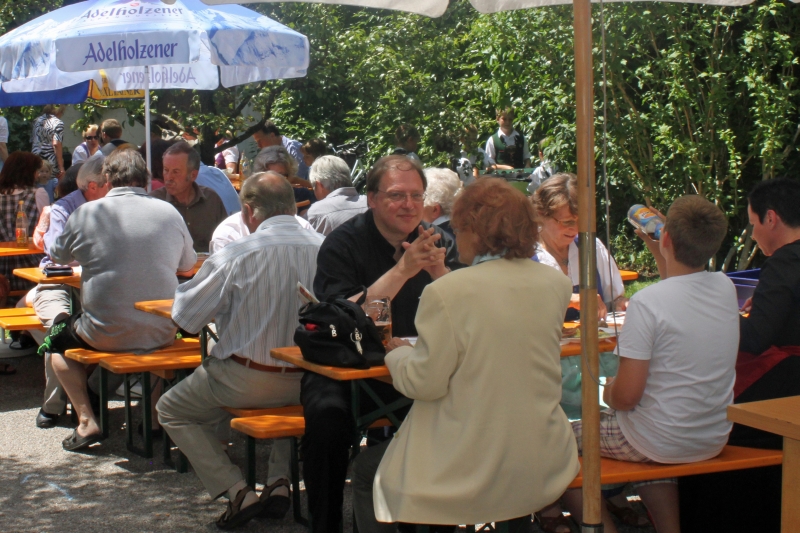Anschließend war bei schönstem Wetter ein buntes Programm im Pfarrgarten und im Pfarrsaal geboten. Für das leibliche Wohl war gesorgt: nach einem Weißwurstfrühschoppen gab es Rollbraten, Grillfleisch und Grillwürste, Salate, Eis und kühle Getränken.