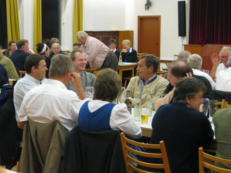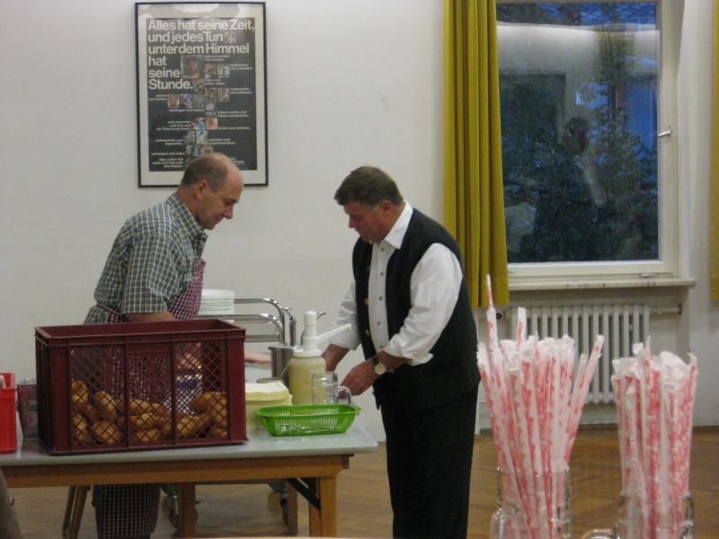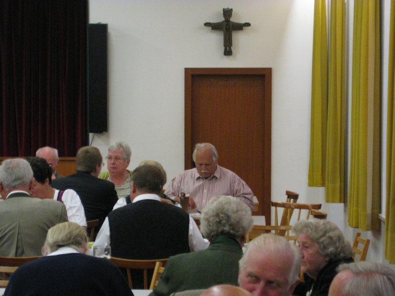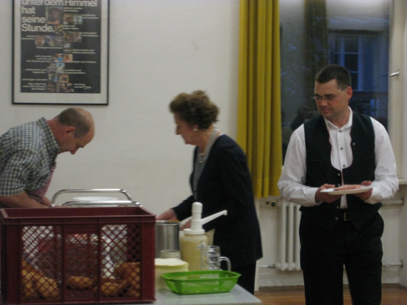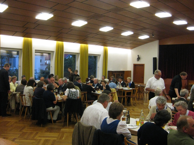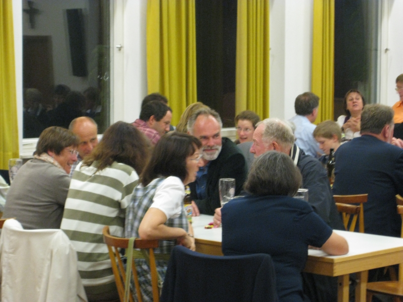 Nach dem Gottesdienst lud zur Pfarrgemeinderat zu einem gemütlichen Zusammensein in den Pfarrsaal bei Getränken und Leberkas.