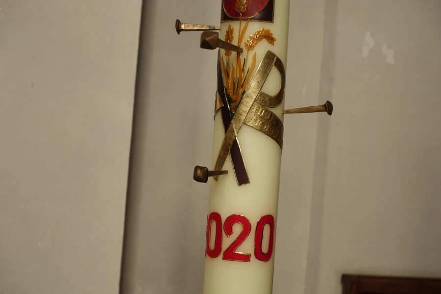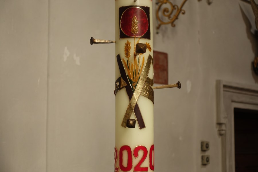 unsere neue Osterkerze 2020 habe ich nach einem Lied aus dem Gotteslob (GL 296) „Im Kreuz ist Heil, im Kreuz ist Leben, im Kreuz ist Hoffnung“ genannt.