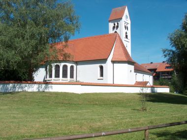 Gegen Ende des 15. Jh entstanden vermutlich die frühesten Teile des bestehenden Gotteshauses (ehemaliger Chor und Sattelturm). 1955 erfuhr die Kirche einschneidende bauliche Veränderungen durch Prof. Georg W. Buchner. Das alte Kirchlein wurde zum querschiffartigen Altarraum umgebaut. Im Süden kam eine Rundapsis hinzu, die durch sieben symbolträchtige Farbfenster erhellt wird. Im Norden entstand das tiefer gelegene Langhaus, welches durch eine Holzbalkentonne überspannt wird. Bereits Mitte des vorigen Jahrhunderts wurden die Barockaltäre von 1782 entfernt. An die Spätgotik erinnert nur noch die reliefartige thronende Muttergottes. Als Beispiel für die moderne Ausstattung des Gotteshauses dient der Kreuzweg in Betonguss der Gräfelfinger Künstlerin Irmgard Diepolder. 1998 wurde die vom Lochhamer Orgelbauer Christoph Kaps ausgeführte Orgel eingeweiht.
