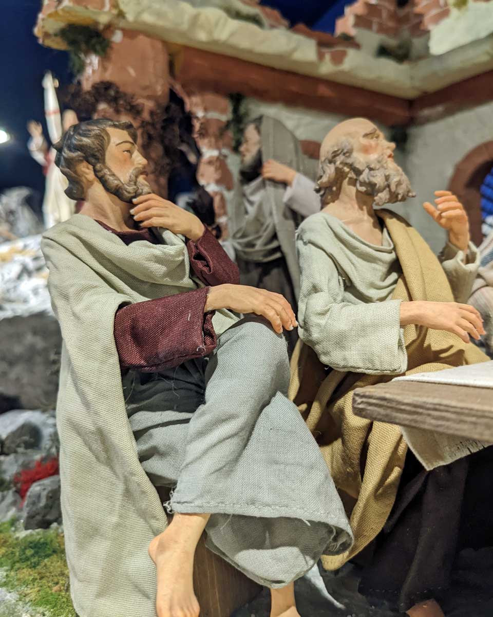Jesus gab Petrus und Johannes den Auftrag nach Jerusalem zu gehen und das Paschamahl vorzubereiten. Als alle am Abend dann, in dem Haus ankamen, zog Jesus sein Oberkleid aus, band sich ein Handtuch um und schüttete Wasser in eine Schüssel. Dann kniete er nieder und begann, seinen Jüngern die Füße zu waschen. Als Petrus das sah, war er sehr aufgebracht „Niemals sollst du mir meine Füße waschen", protestierte er. „Wenn ich dich nicht wasche", erklärte Jesus, „dann gehörst du nicht wirklich zu mir." Da sagte Petrus: „Wenn es so ist, Herr, dann wasch nicht nur die Füße, wasch auch meine Hände und meinen Kopf." „Wer gebadet hat, der ist ganz rein und braucht nur noch die Füße zu waschen. Ihr seid alle rein — bis auf einen unter euch", erwiderte Jesus, denn er wusste, wer ihn an seine Feinde verraten würde. Als Jesus ihnen die Füße gewaschen hatte, zog er sein Oberkleid wieder an und setzte sich.