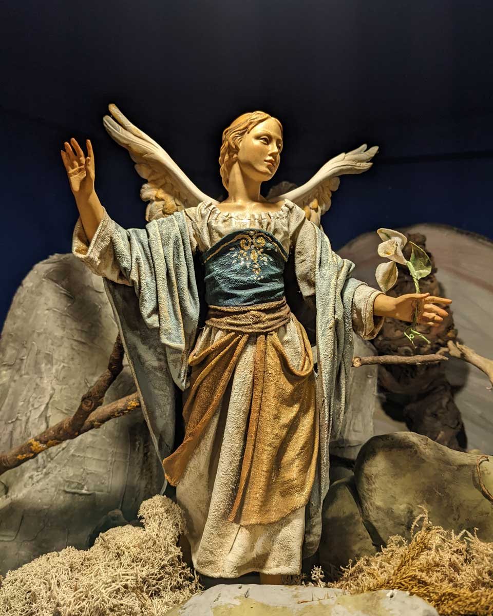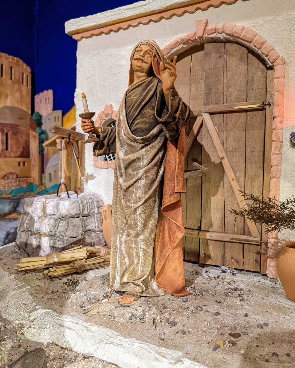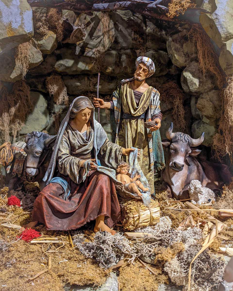 Zum einen wird die Herbergssuche von Maria und Joseph dargestellt und zum anderen die Geburt Jesu im Stall.