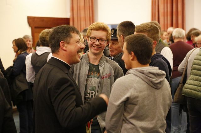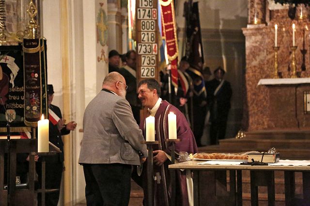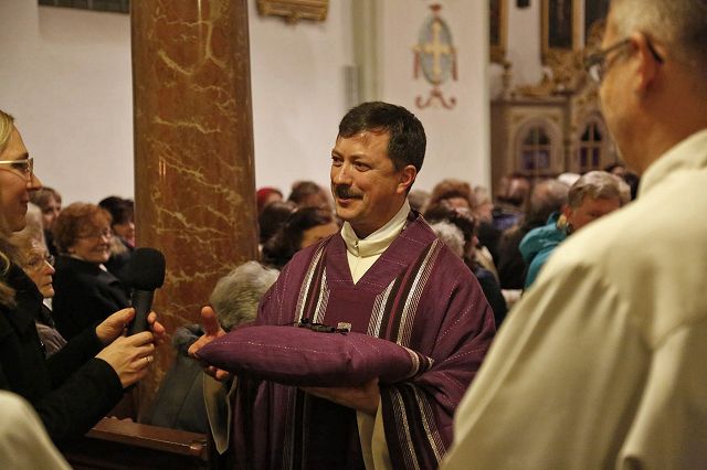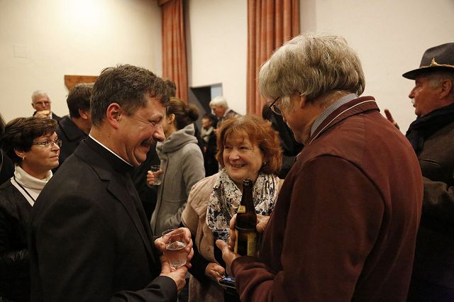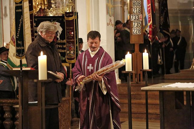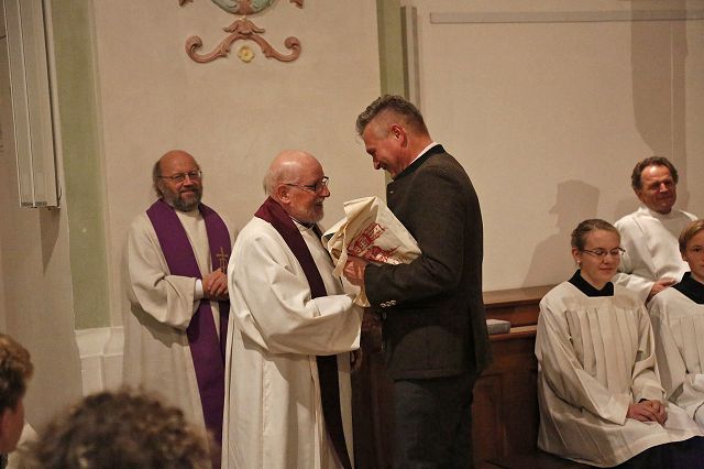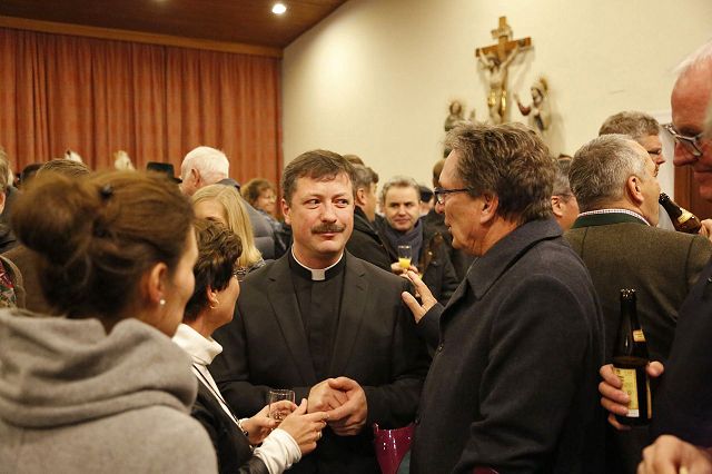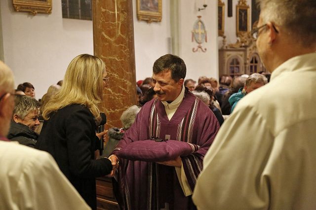 Bruckmühl – Bis auf den letzten Platz war der Kirchenraum am Samstagabend, den 9. Dezember 2017 zur feierlichen Einführung von Pfarrer Augustin Butacu gefüllt. Zahlreiche Ehrengäste und Hauptamtliche, darunter das neue Seelsorgeteam für die beiden Pfarrverbände mit Pater Anton Lötscher, Gemeindereferent Markus Stein (PV Heufeld-Weihenlinden), den Pastoralreferenten (PV Bruckmühl-Vagen) Christof Langer und Markus Brunnhuber, Andrea Martin vom Regionalteam-Süd, Pfarrer Matthias Bartl, Ordensmitbrüder, der evangelische Pfarrer Harald Höschler und der Bürgermeister der Marktgemeinde Bruckmühl Richard Richter sowie der Feldkirchen-Westerhamer Bürgermeister Hans Schaberl wohnten diesem besonderen Gottesdienst bei. Musikalisch wurde die Messe durch die Kirchenchöre der beiden Pfarrverbände begleitet. Eingerahmt durch die Fahnenabordnungen der Ortsvereine beider Pfarrverbände eröffnete Landkreisdekan Daniel Reichel die Abendmesse. Andrea Martin (Regionalteam-Süd) verlas eingangs die Ernennungsurkunde, ausgestellt durch Erzbischof Reinhard Kardinal Marx, zur Installation von Pfarrer Augustin Butacu. Angeführt durch Landkreisdekan Reichel ging es danach für den neuen Seelsorger gefolgt vom Hauptamtlichen-Team zur Kirchenpforte. Hier übergab, umrahmt von den Kirchenpflegern der Pfarreien, Verwaltungsleiterin Silvia Donderer feierlich den Kirchenschlüssel. Brigitte Schmid verlas im Anschluss die Grußworte im Namen der Pfarrverbandsräte und ein Willkommensapplaus des Kirchenvolkes schloss sich für Pfarrer Butacu an. Ein Dank galt an diesem Abend auch Pfarrer Matthias Bartl, der trotz Ruhestandes, ein großes Maß an seelsorgerischer Arbeit in den letzten Monaten übernommen hatte. Ein Blumengruß, ein Präsent und ein ehrliches „Vergelt`s Gott“ wurden ihm durch Regina Grabichler und Brigitte Schmid übergeben. Nach der Heiligen Messe ergriffen die Ehrengäste das Wort. Die Pfarrverbandsräte Regina Grabichler und Brigitte Schmid „freuen sich auf die bevorstehende gemeinsame Zusammenarbeit mit dem neuen Seelsorger in den Gremien der Pfarrverbände“. Silvia Donderer richtete einen Dank an alle Ehrenamtlichen in den Pfarrverbänden und den Appell, auch weiterhin „zusammen zu helfen, die Zukunft gemeinsam zu gestalten und sich den neuen Herausforderungen zu stellen“. Hans Lang (Kirchenpfleger- Bruckmühl) begrüßte Pfarrer Butacu im Namen aller Ehrenamtlichen in der Kirche mit einem symbolischen Brezenschlüssel, der „als Zeichen dienen soll, dass die Ehrenamtlichen dem neuen Pfarrer offen gegenübertreten und sich ebenfalls auf eine gute Zusammenarbeit freuen“. Die Bürgermeister der beiden politischen Gemeinden ergriffen im Anschluss das Wort und „hoffen auf eine lange Amtszeit, auf die ehrenamtlichen Helfer, die die bevorstehenden Aufgaben gemeinsam mit Pfarrer Butacu mittragen werden und auf eine gute Zusammenarbeit der Gremien und dem pastoralen Team“. Pfarrer Harald Höschler als Vertreter der evangelisch-lutherischen Kirche richtete ebenfalls einen Willkommensgruß an den neuen katholischen Seelsorger. „Ökumene spielt in Bruckmühl schon lange eine große Rolle, sei es durch verschiedene Unterstützungen oder das gemeinsame Gebet“, so der evangelische Seelsorger. Nach der Überreichung der Ernennungsurkunde übernahm Pfarrer Augustin Butacu das Wort und bedankte sich bei allen „für die herzliche Aufnahme in den neuen Pfarrgemeinden“. „Zwölf Schlüssel für die Kirchentüren trage er nun bei sich, aber einen Schlüssel müsse er noch bekommen, den Schlüssel zum Herzen jedes Pfarreimitgliedes“, so sein milder Wunsch für die Zukunft in seinem neuen Seelsorgebereich“ und erntete dafür nochmaligen Beifall aus den Kirchenbänken. Danach konnten sich die Kirchgänger bei einem Stehempfang im Pfarrheim persönlich mit Pfarrer Butacu bekannt machen.