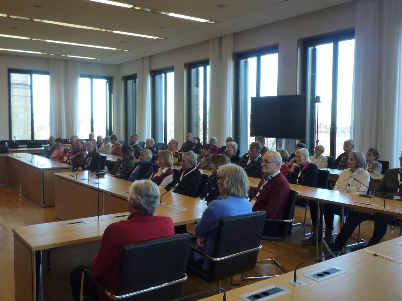 Es folgte ein Film über die Historie und die Zusammensetzung des Bayerischen Landtags und die Aufgaben des Landtagspräsidium. Leider war an diesem Tag die Plenarsitzung etwas kürzer als sonst und so konnte man bei der Besichtigung des Plenarsaales zwar keiner Debatte mehr beiwohnen, aber man bekam schon einen umfassenden Eindruck über das Bayerische Parlament.