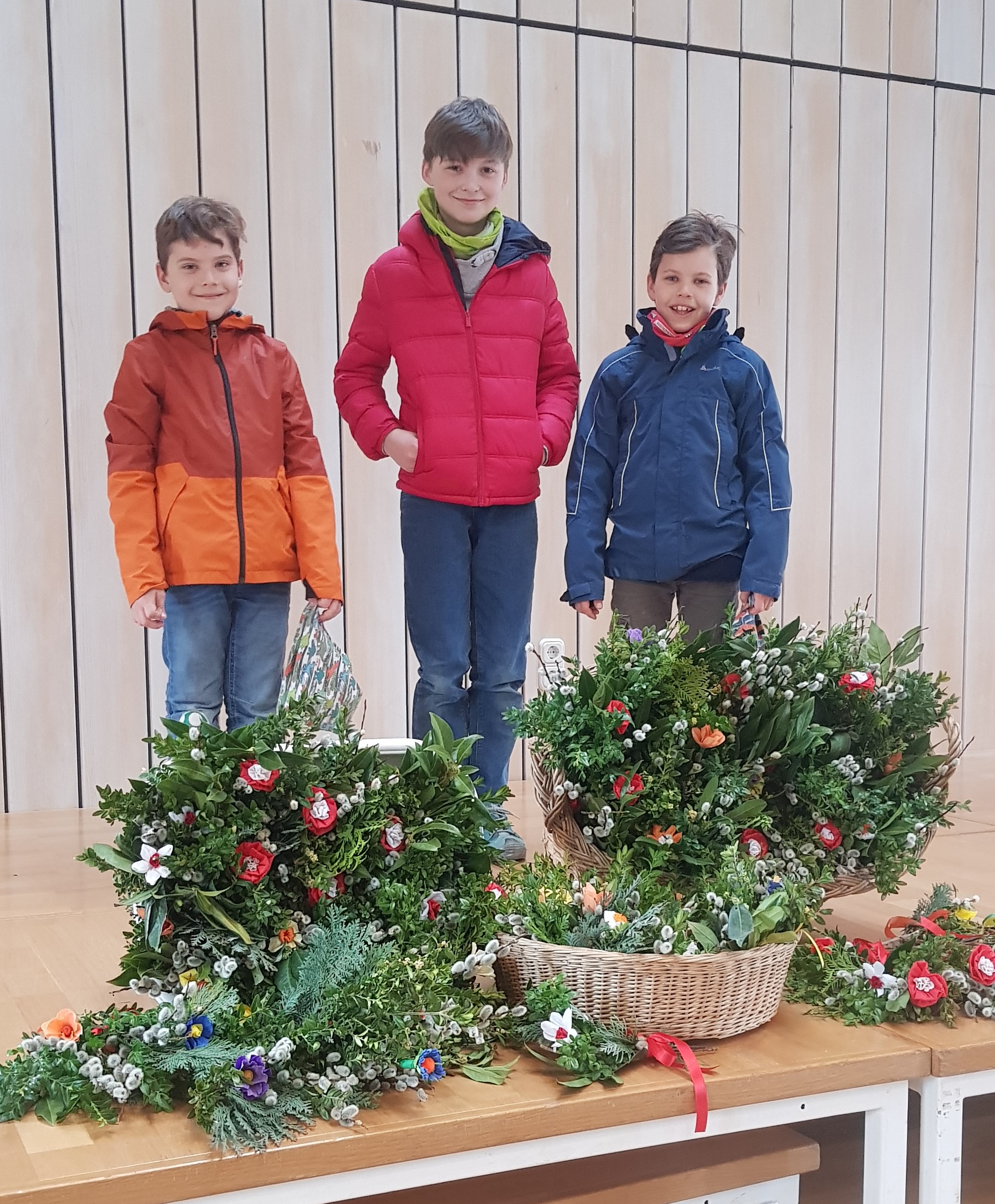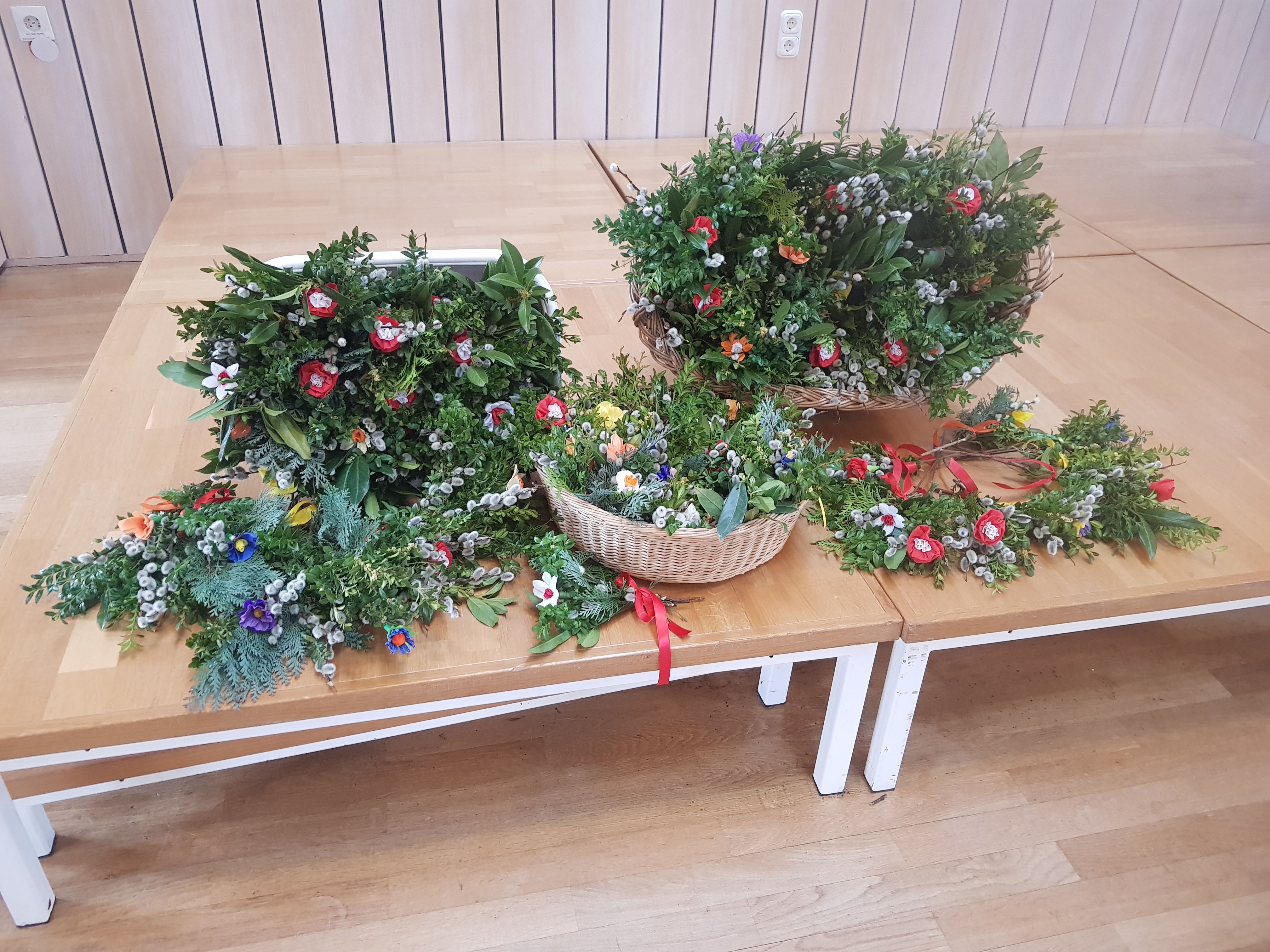 So waren die bereitgestellten Körbe bald mit Palmbuschen von unterschiedlichen Größen gefüllt (teilweise auf Bestellung gefertigt). Herzlichen Dank an alle Helfer!