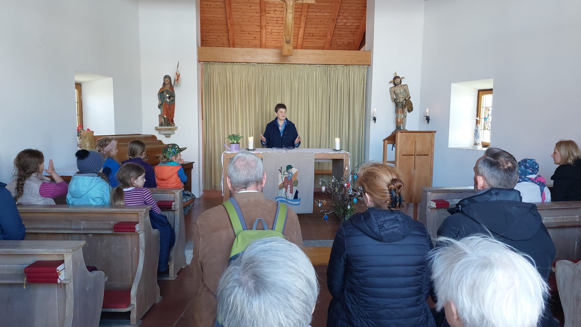 Unsere Gemeindereferentin Christiane März segnete die Palmbuschen und dann zogen alle gemeinsam zur Kirche, um dort den Gottesdienst zu feiern.