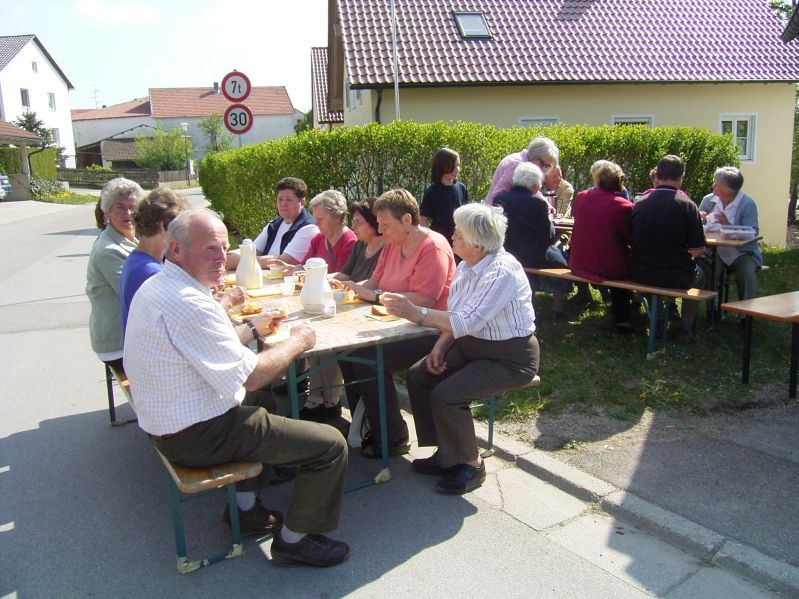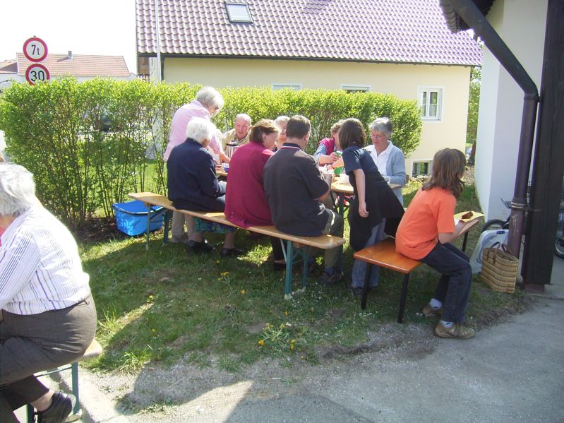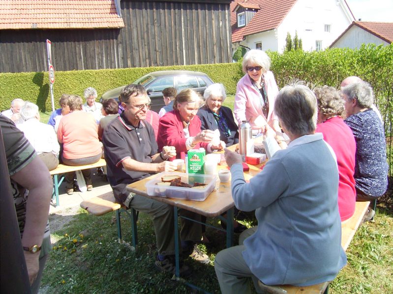 Fleißige Helfer aus Hettenshausen hatten Kaffee und Kuchen vorbereitet und so konnte man sich nach dem Gottesdienst noch bei herrlichem Sonnenschein vor der Kirche zusammensetzen, sich unterhalten und dann frisch gestärkt