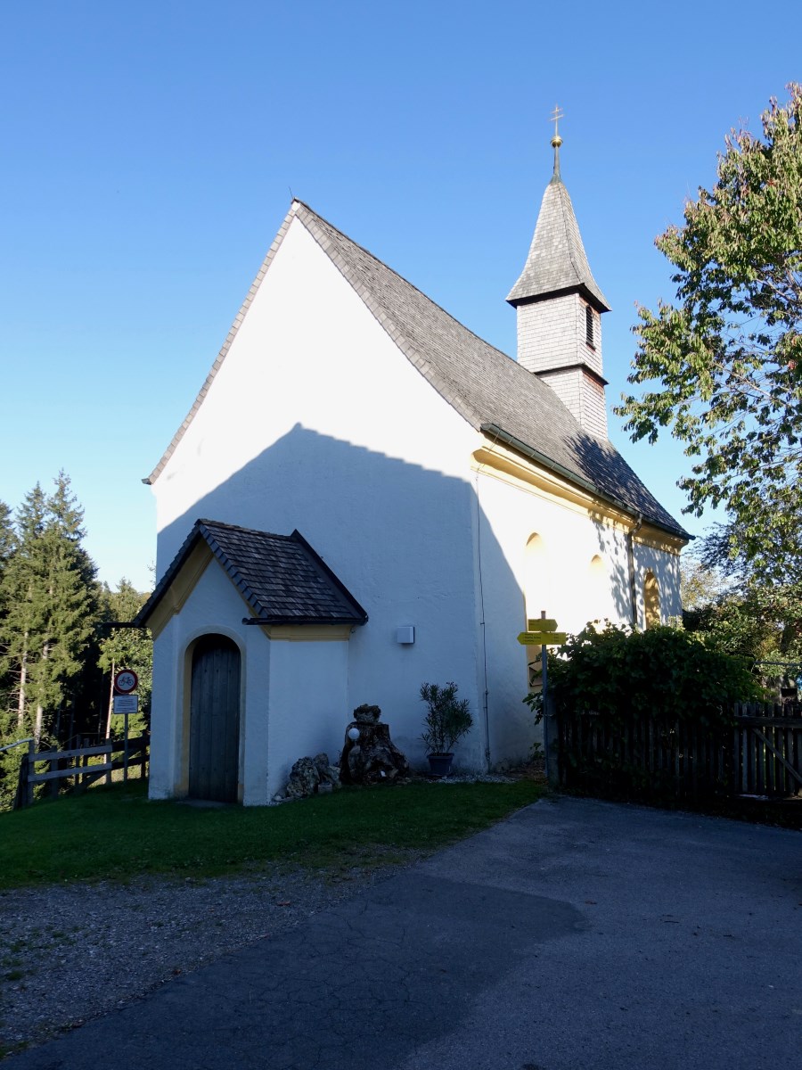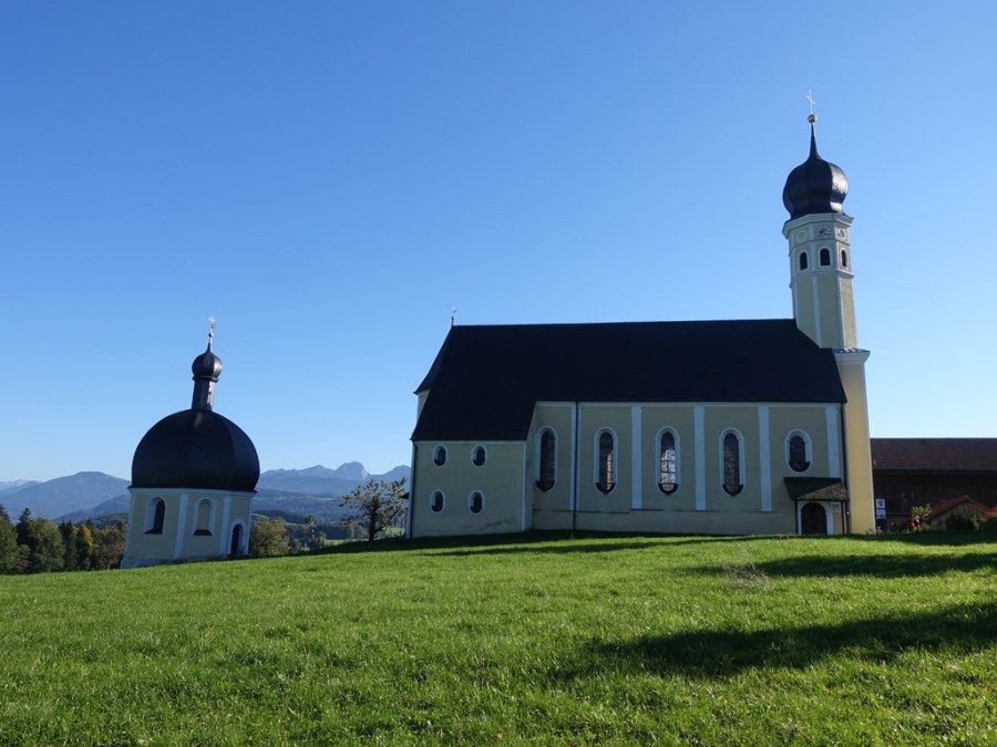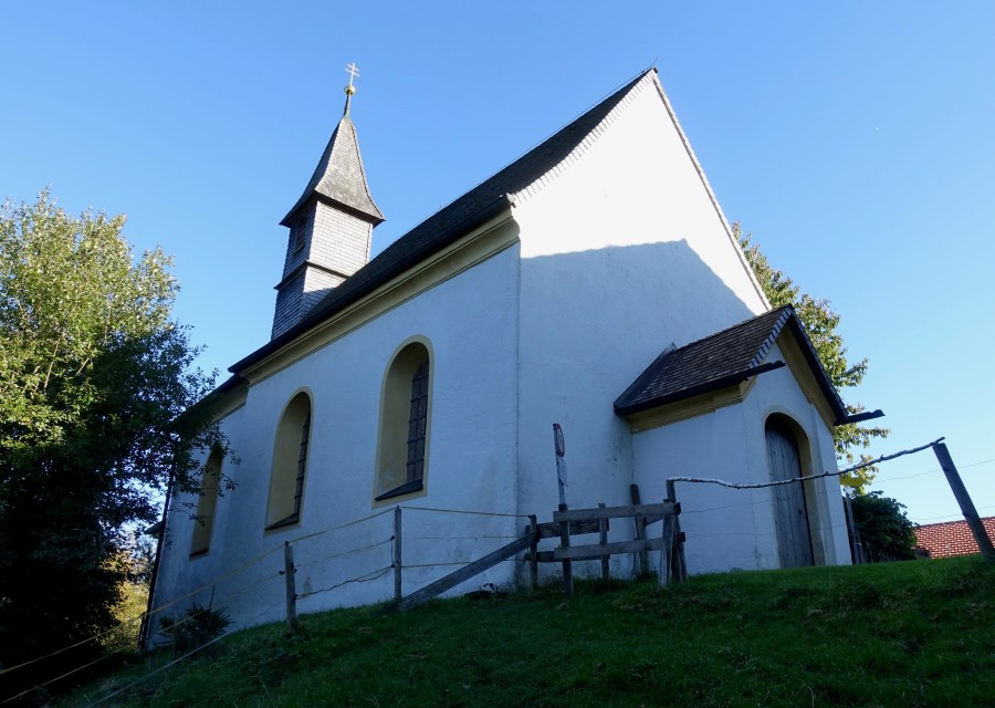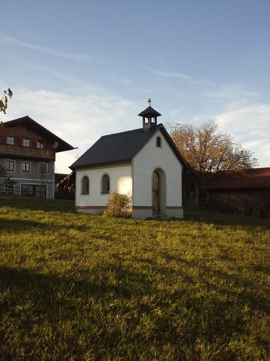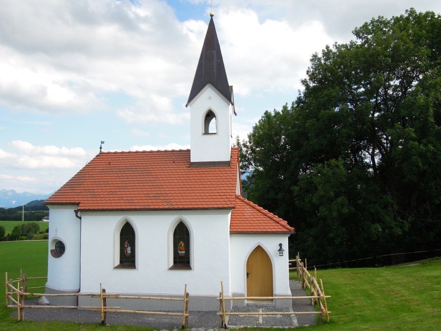 Weißblau der Himmel oben, die schmucke Kapelle St. Joseph unten im herrlichen Oberland. Der Trachtenverein "Groußstoana" Eyrain-Jedling hat sich 2012 mit diesem Kirchlein eine geistige Mitte geschaffen.
