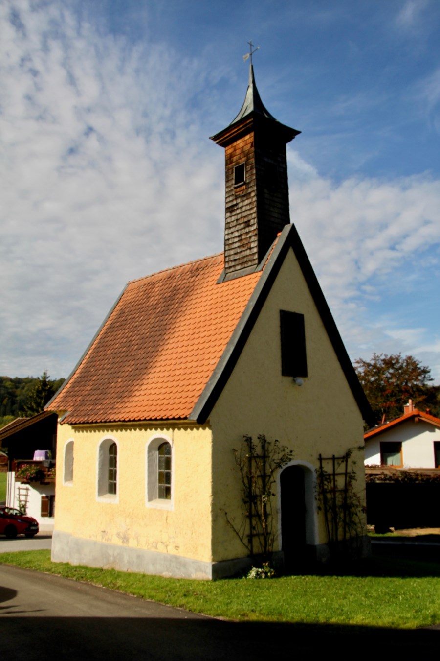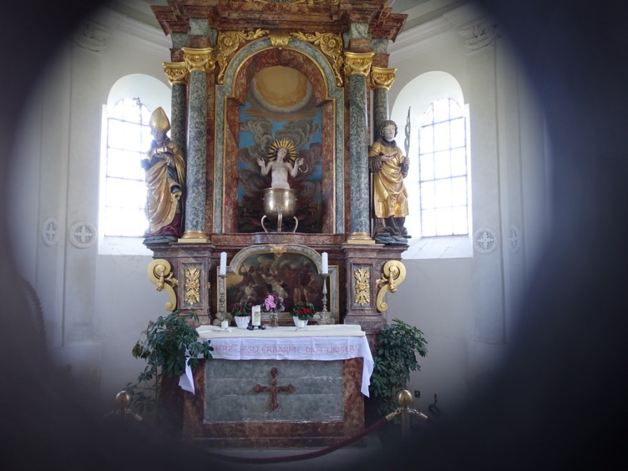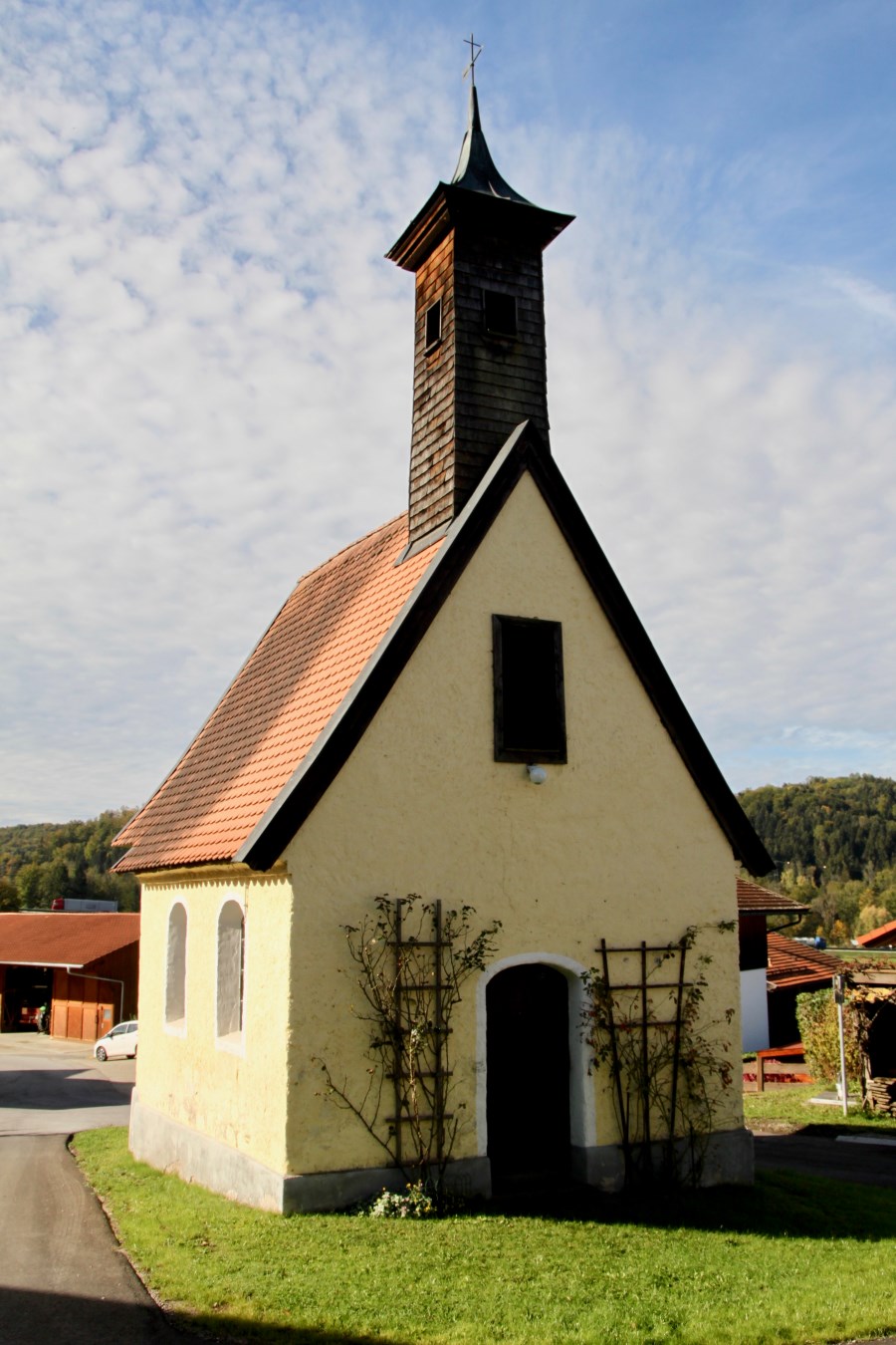 Weißblau der Himmel oben, die schmucke Kapelle St. Joseph unten im herrlichen Oberland. Der Trachtenverein "Groußstoana" Eyrain-Jedling hat sich 2012 mit diesem Kirchlein eine geistige Mitte geschaffen.