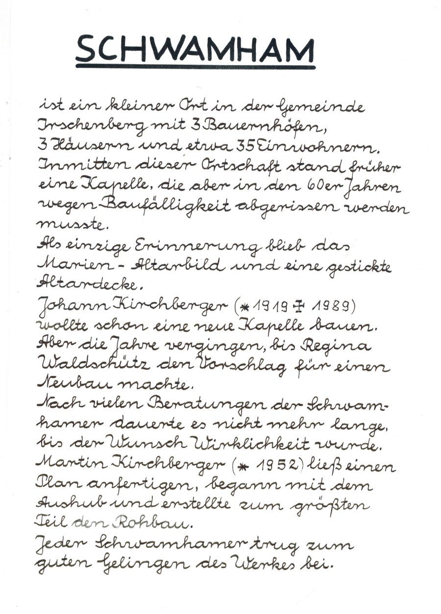 Die Privatkapelle Waldschütz in Wendling wurde von den Familien Waldschütz anlässlich der Primiz von Herrn Walter Waldschütz erbaut!