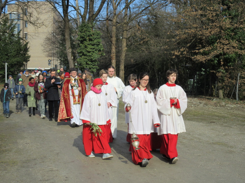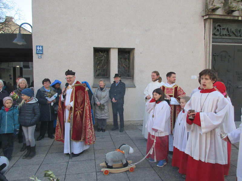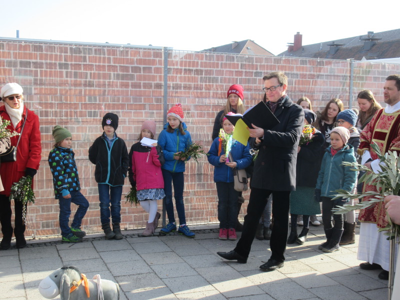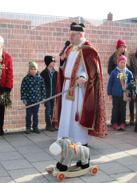 Zug von der Andreaskirche zur Antomiuskirche mit "Palmesel" Matthias.
