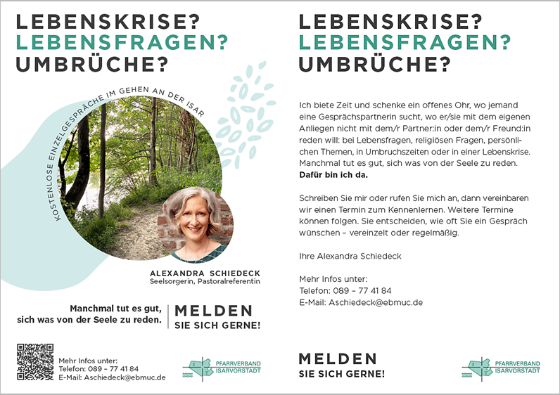 • Alexandra Schiedeck | Pastoralreferentin | 089 / 741 187 37 | ASchiedeck@ebmuc.de