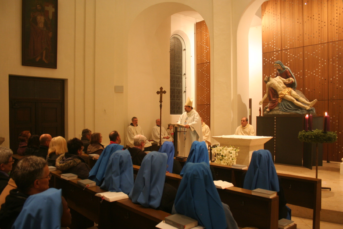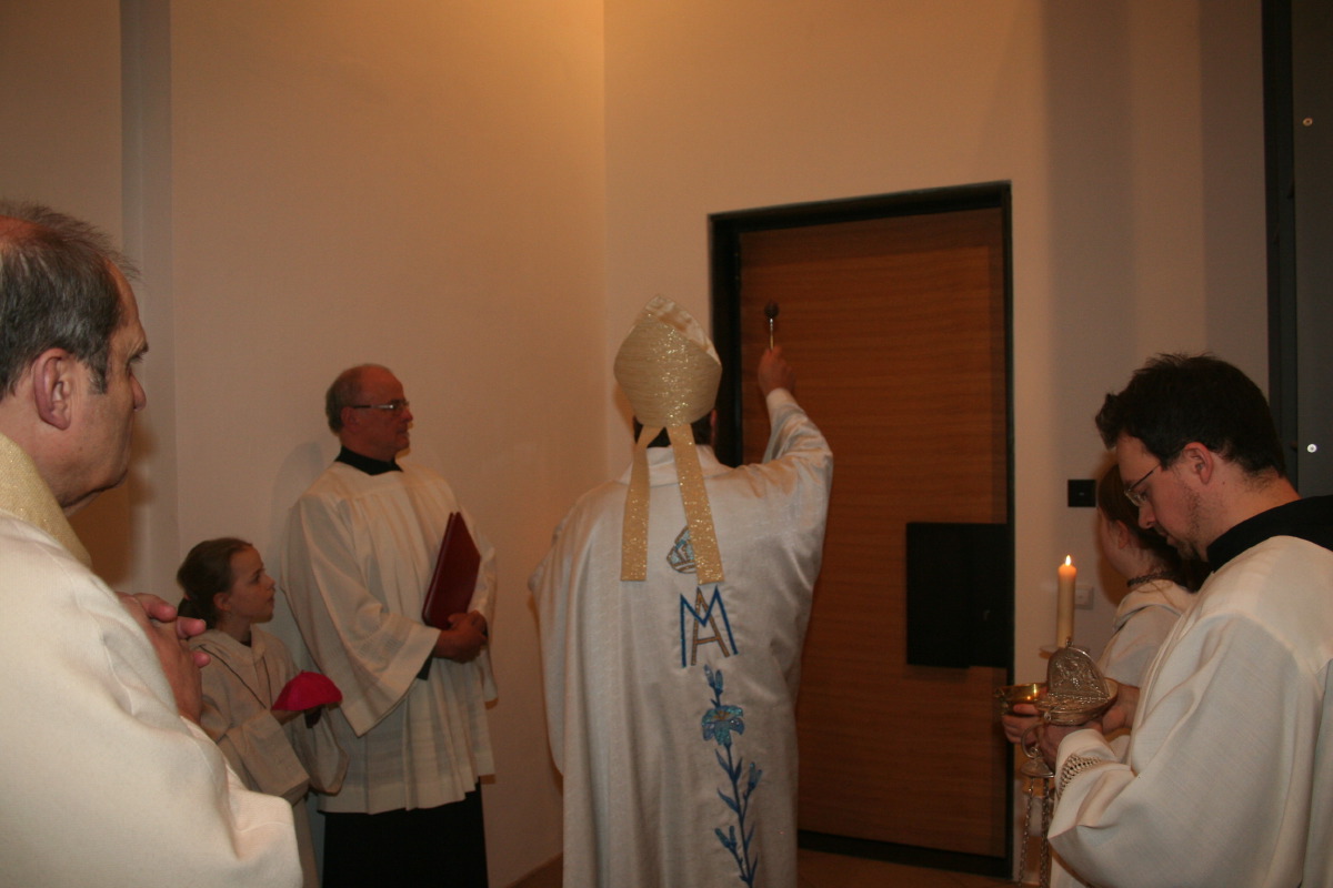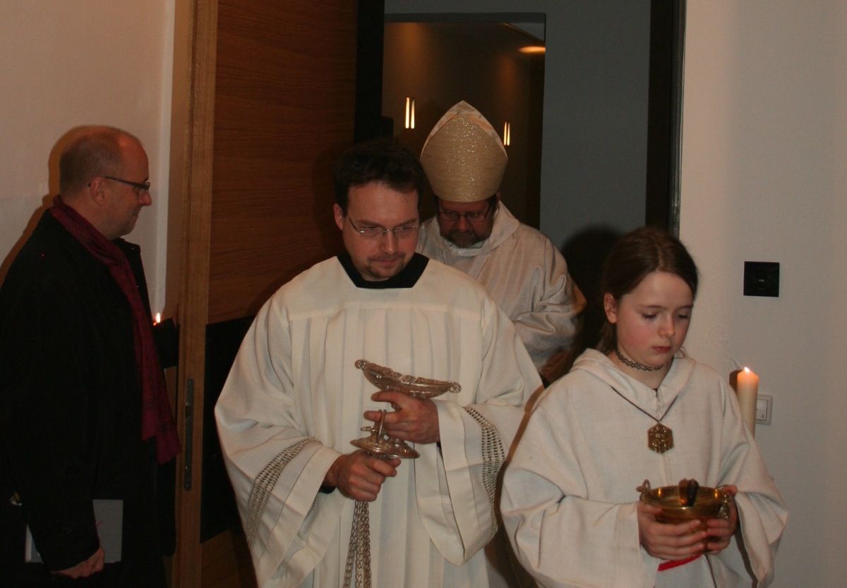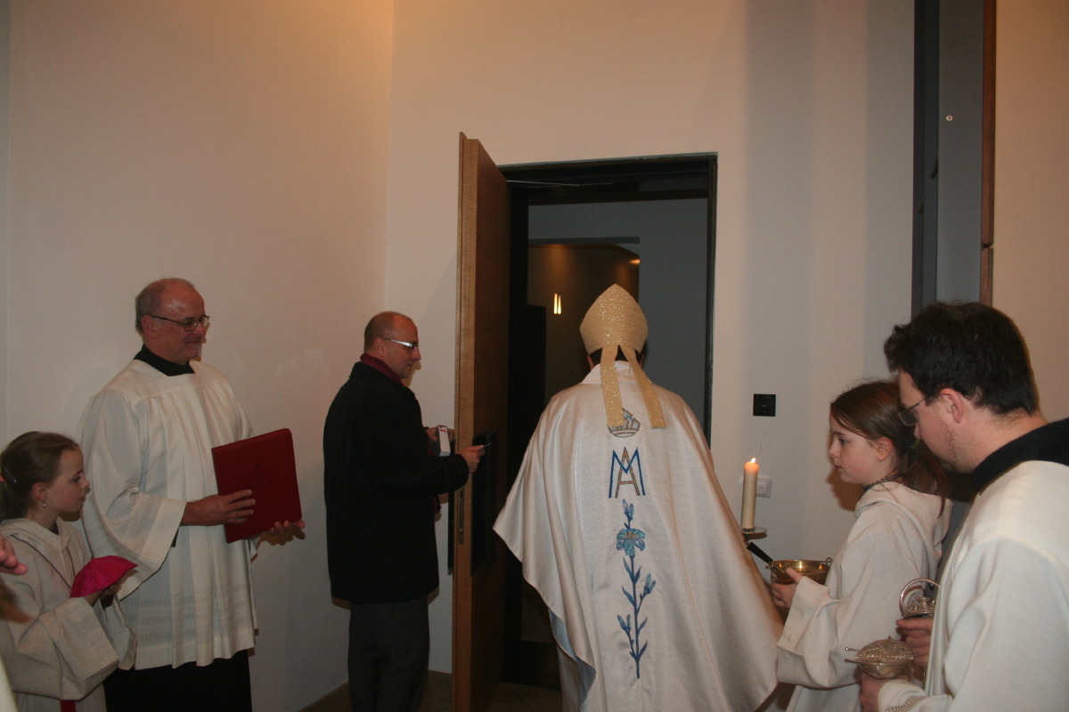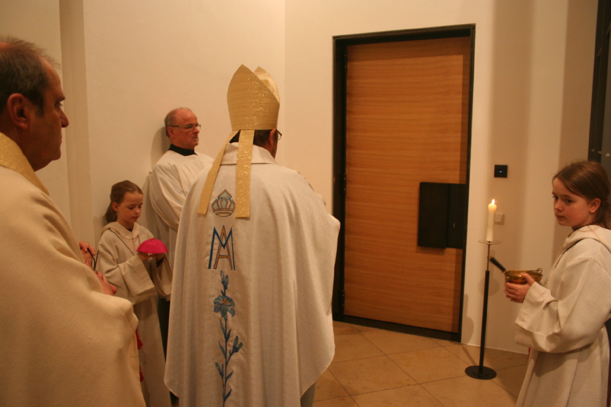 Weihbischof Wolfgang Bischof zelebrierte zusammen mit Monsignore Sauer, dem Gesitlichen Leiter des IFP und mit Pfarrverbandsleiter P. Stefan Maria Huppertz OFMCap die feierliche Messe. Im Verlauf der Messe nahm segnete Weihbischof Bischof den Durchgang.