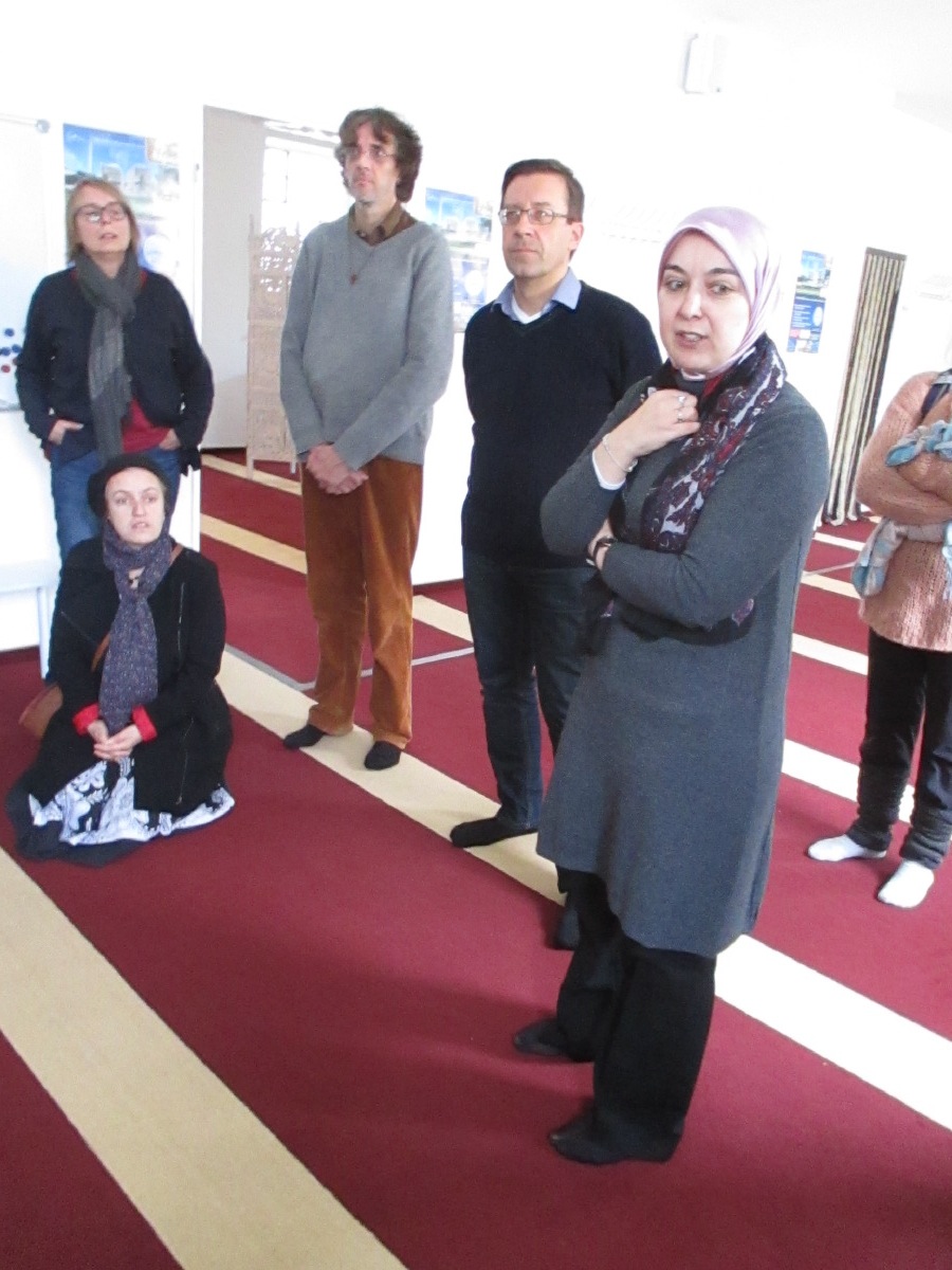 Im Gebetsraum erklärte Frau Yerli wie ein Freitagsgebet abläuft, und welche formellen Rahmengebeenheiten dabei von den Gläubigen zu beachten sind.