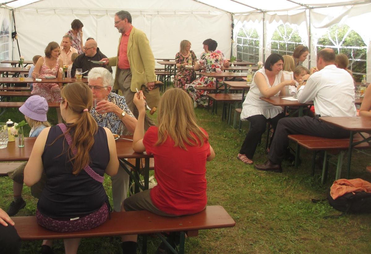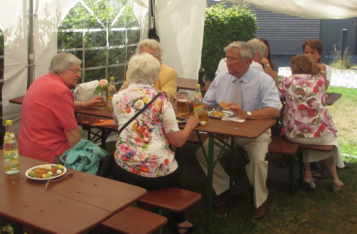 Nach dem Gottesdienst konnte bei strahlendem Sonnenschein der Pfarrgarten für den Imbiss und die kurzen Reden zur Verabschiedung genutzt werden.