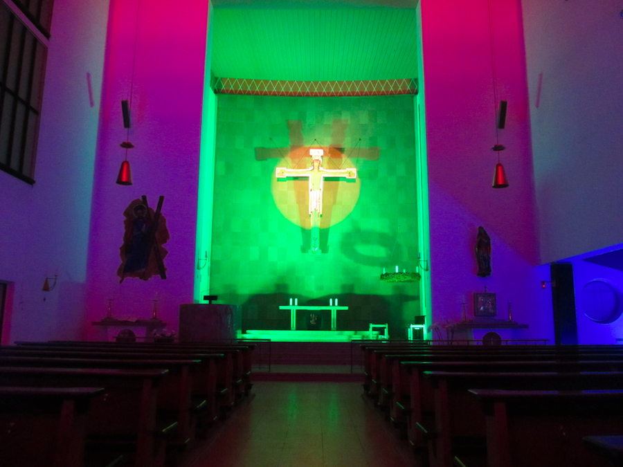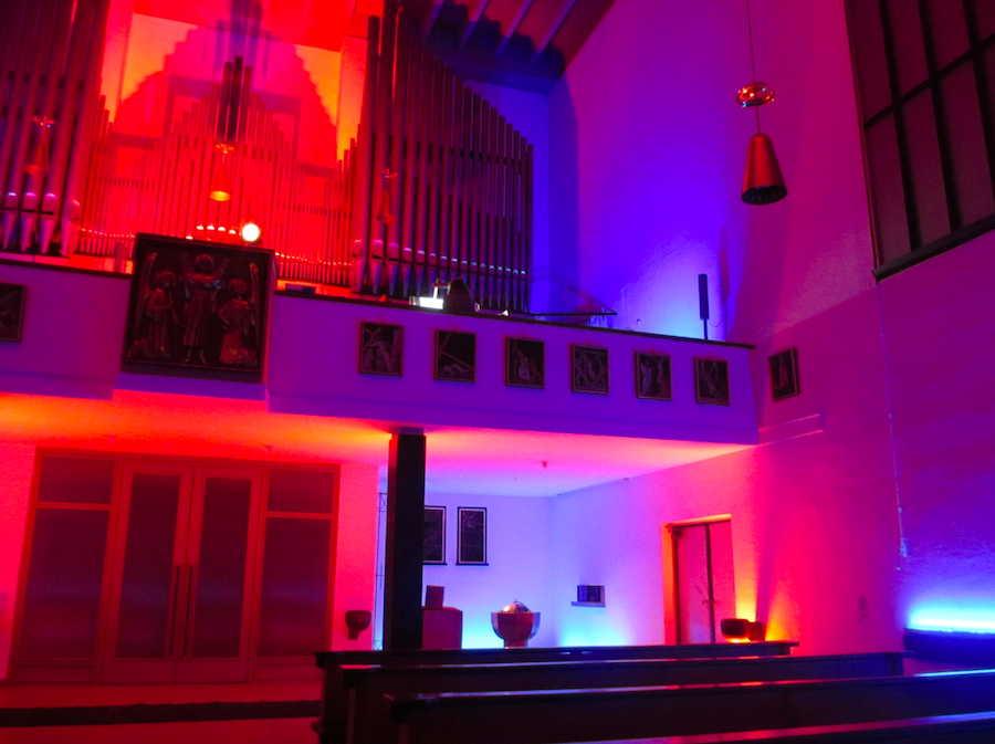 Das Andreaskonzert 2013 stand unter dem Motto: Licht & Orgel. Anlässlich des 60. Jahrestages der Weihe der Andreaskirche erstrahlte diese dazu in bunten Farben. Die von Robert Risinger, Licht & Kunst e.V., inszenierte Lichtinstallation bewirkte ein völlig neues Raumgefühl, das durch das Orgelkonzert eine würdige Steigerung erfuhr. Die bekannte Konzertorganistin Gudrun Forstner spielte Werke der französischen Komponisten Charles-Marie Widor und Marcel Dupre. An dieser Stelle danken wir dem Bezirksausschuss 2, Ludwigsvorstadt - Isavorstadt, der Landeshauptstadt München, der diese gelungene Veranstaltung durch seine finanzielle Unterstützung ermöglicht hat.