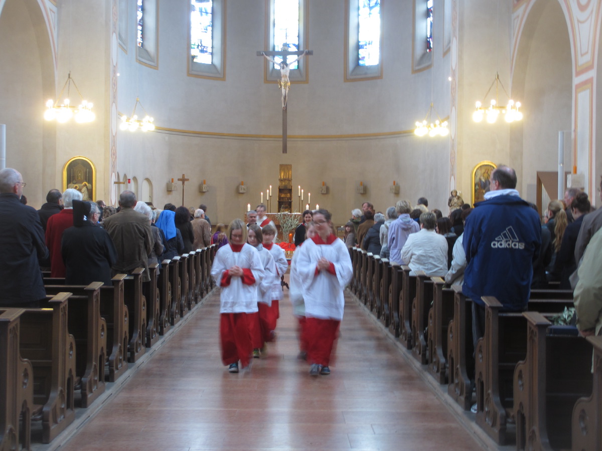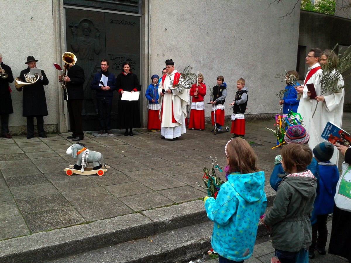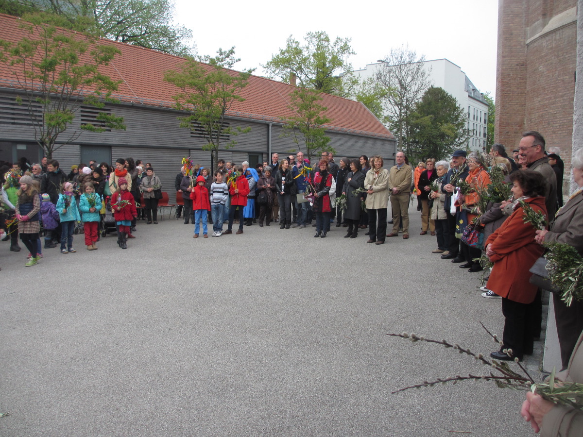 Palmsonntag  - Die Prozession ging von St. Andreas nach St. Anton, dort Palmweihe vor den Remisen, Gottesdienst in der Antoniuskirche. Anschließend fand die Verabschiedung des alten Pfarrgemeinderats und Begrüßung der neuen Pfargemeinderatsmitglieder im Pfarrsaal statt.
