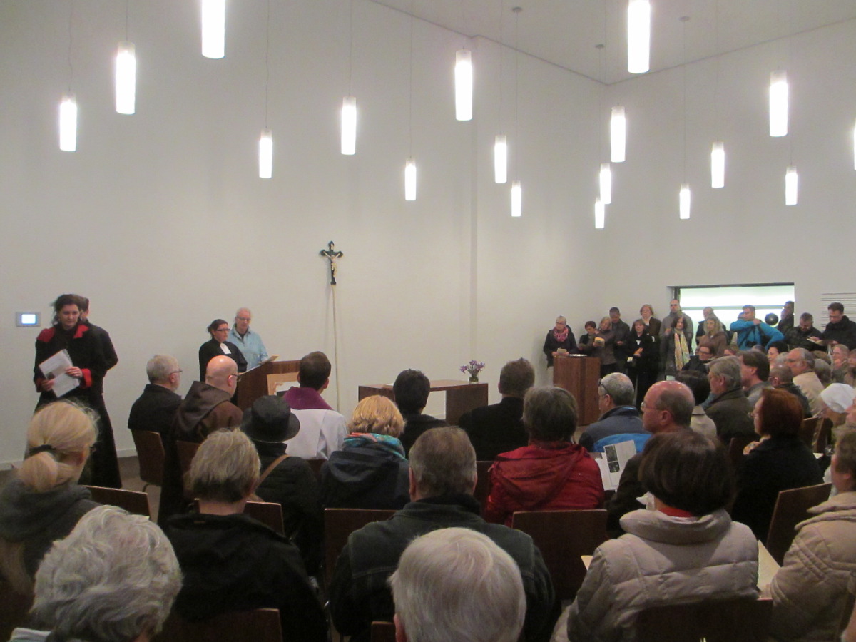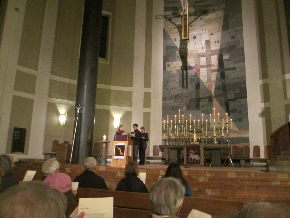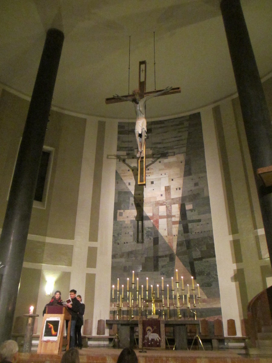 Der ökumenische Kreuzweg begann mit der Begrüßung in St. Andreas. von dort gingen die ca. 150 Christen auf dem Kreuzweg über sieben Stationen zur evangelischen St. Matthäus Kirche am Sendlinger Tor Platz.