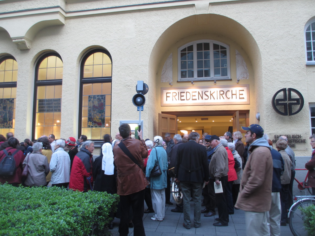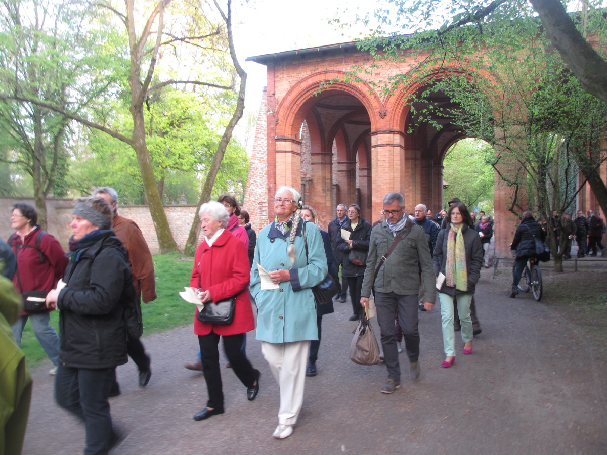Von St. Andreas ging es am Schlachthof vorbei zum "eingezäunten Stier" (Zenetti- Ecke Thalkirchner Strasse) nach St. Anton. Von dort durch den alten Südlichen Friedhof zur Friedenskirche in der Frauenlobstrasse. Über die evangelisch reformierte Kirche (Reisingerstrasse) und die Alt-Katholische Kirche (Blumenstrasse) zur evangelischen Kirche St. Matthäus am am Sendlinger Tor Platz. Dort gabe es noch ein Beisammensein in Form einer Agape.