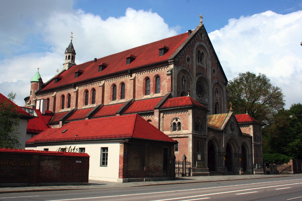 Der neuromanische Kirchenbau mit basilikalem Querschnitt und halbrundem Chor besitzt Außenmaße von 60 x 24 Metern. Der mit Ziegeln und hellem Naturwerkstein ausgeführte Mauerwerksbau ist reich gegliedert. Das Mittelschiff weist eine Spannweite von 16 Metern auf und wird mit einem Korbbogengewölbe aus Eisenbeton nach dem System Monier überspannt. Es ist damit eine der ersten Bauten in München mit einem Eisenbetongewölbe. Die im Pfarrarchiv vorhandenen Planunterlagen belegen, dass das Gewölbe ursprünglich als Holzspantenkonstruktion geplant war. Es sind sowohl die Spanten, als auch Abhängungen von dem hölzernen Dachtragwerk eingezeichnet. Das bis heute existierende Eisenbetongewölbe ist dagegen frei tragend und nur wenige Zentimeter dick (vgl. Jörg Rehm