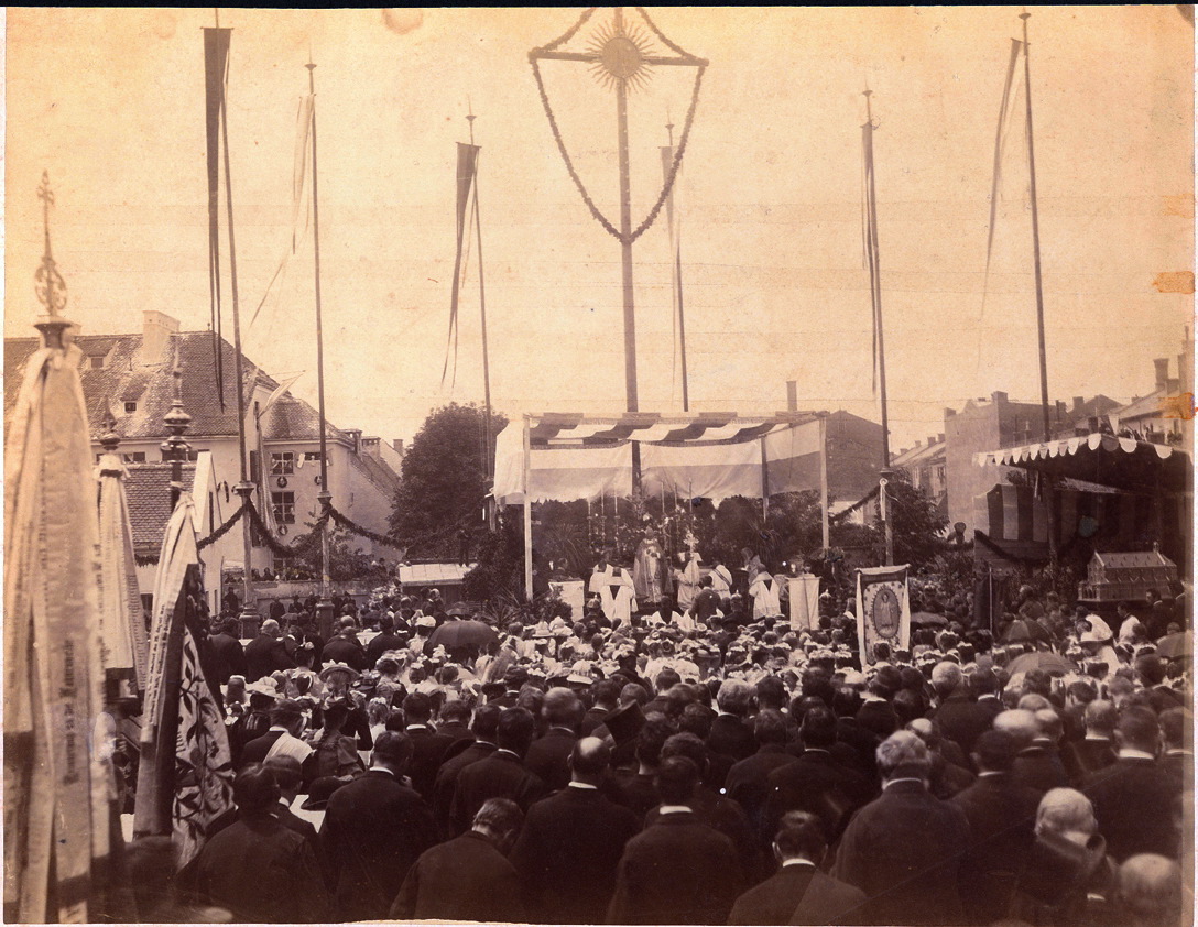Eine große Menschenmenge hatte sich versammelt. Die katholischen Vereine mit ihren Fahnen empfingen den Erzbischof. Der Zug zur Kirche gestaltete sich ähnlich wie bei der Grundsteinlegung, nur dass diesmal dem Erzbischof auf Samtkissen die Reliquien folgten. Die Konsekration der Altäre dauerte bis zum frühen Nachmittag. Unmittelbar danach feierte der Erzbischof das erste heilige Messopfer. Beim anschließenden Festmahl im Refektorium hielten der Provinzial Pater Viktrizius Weiß, die Bürgermeister Borscht und Brunner und Stadtpfarrer Huhn eine Rede. Die Baukosten für die Kirche beliefen sich auf rund 556.000 Mark.