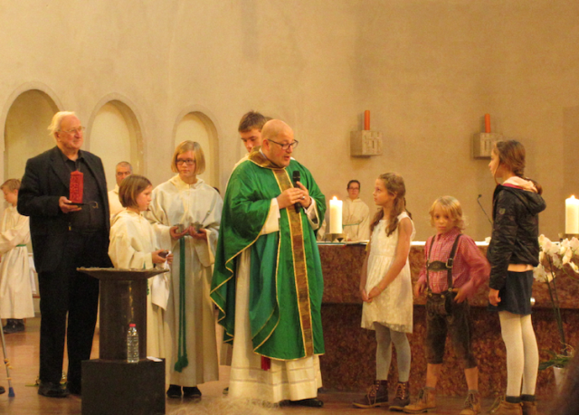 Am Ernte-Dank-Tag lud der Pfarrverband alle Aktiven aus dem Pfarrverband zu einem Gottesdienst. Im Rahmen des Gottesdienstes fand auch eine Taufe statt. Anschließend ging es für alle Aktiven zur Dankesfeier.