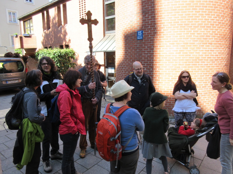 Die erste Gruppe ging von der Antoniuskirche los. Eine zweite fuhr mit der U-Bahn nach St. Florian in Riem und traf dort mit der ersten Gruppe zusammen.