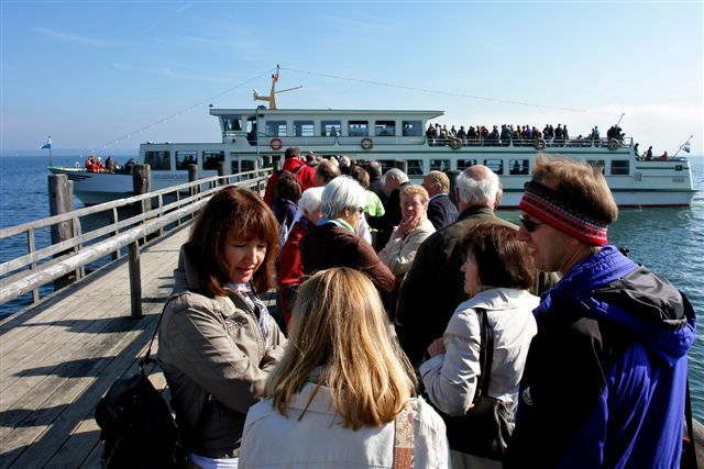 Mit zwei voll besetzten Bussen ging es zunächst nach Gstadt, um mit dem Schiff zur Fraueninsel überzusetzen.