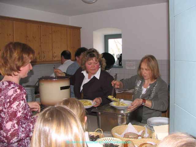 Das Fastenessen schloss sich nahtlos an die Pfarrversammlung an. Theo Kemper, der langjährige Koch des Flossinger Fastenessens, hatte ein leckeres Nudelgericht mit Tomatensauce gezaubert, das sich alle Anwesenden gut schmecken ließen.