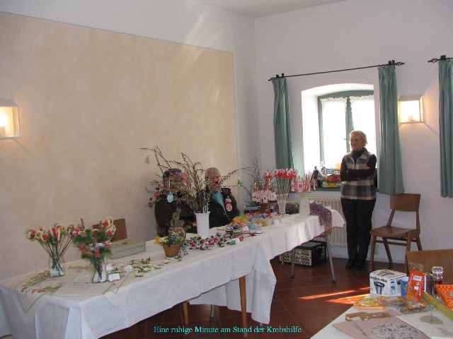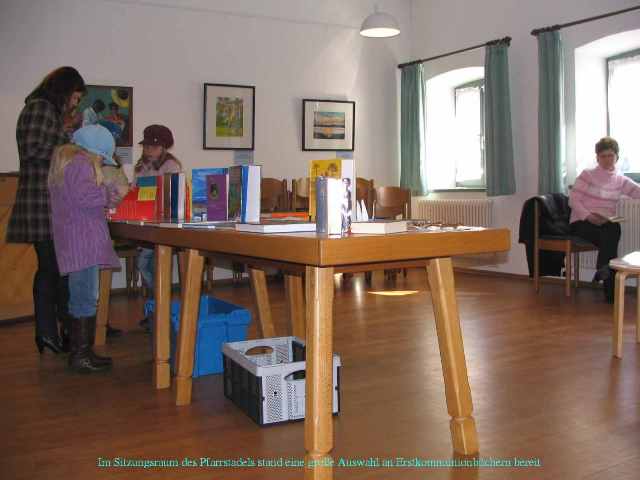 Damit man auch etwas mit nach Hause nehmen konnte, wurden Bücher zur Erstkommunion angeboten. Die Landjugend betreute den Stand mit GEPA-Waren, und die Krebs-Selbsthilfegruppe um Frau Helga Ziche verkaufte selbstgebastelten Osterschmuck.