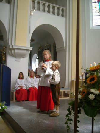 Der Jubilar zog mit Prälat Hermann Herzig aus Passau, dem früheren Oberneukirchener Ortspfarrer Sebastian Allram, dem Oberneukirchner Heimatpriester P. Othmar Noggler sowie mit Pfarrer Armin Thaller und Pastoralreferent Stefan Durner und den Ministranten ein.