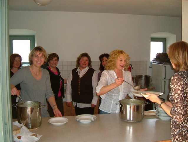 Am Vortrag kochte ein Team um Hildegard Lohr bereits ein sehr schmackhafte Kartoffelsuppe. Als Koch konnte Reinhard Wimmer gewonnen werden.