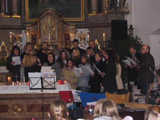 "Seht die gute Zeit ist nah..." - mit diesem Lied zogen die Chöre in die Kirche ein. Die Staade Stund wurde diesmal von Christa Mayer, Leiterin der FlossSingers organisiert. Es sangen der Kirchenchor, die FlossSingers und der Kinderchor.