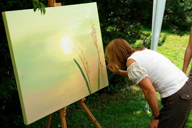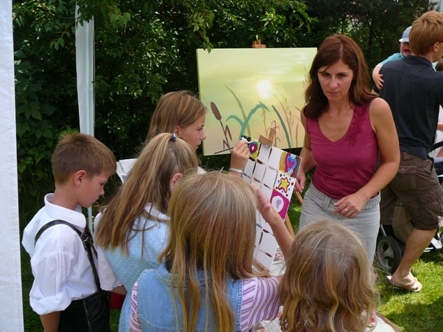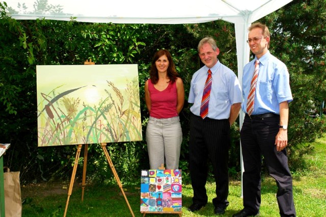 Da Michael Tress selber ein begabter Künstler ist, überreichte ihm die Pfarrei Flossing als Geschenk ein Gemälde, das von Michaela Deutschenbauer vorbereitet und von den Besuchern des Pfarrverbandsfestes vollendet wurde.