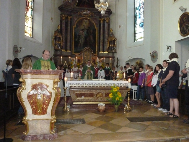 Weihbischof Martin Gächter aus Basel in der Schweiz, der Präsident des europäischen Ministrantenverbandes CIM ermutigte die Buben und Mädchen, die Kirche lebendig zu halten, indem sie auch dann in den Gottesdiensten vertreten seien, wenn sie nicht zum Dienst eingeteilt sind. Selbst zu dieser eher kritischen und unbequemen Aufforderung erntete er langanhaltenden Beifall.