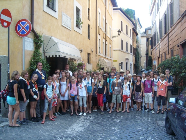 Die Ministrantengruppe aus dem Dekanat Mühldorf vor der Kirche Sta. Maria di Trastevere