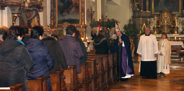 Am Vorabend des ersten Adventsonntags kam Weihbischof Bernhard Haßlberger nach Flossing, um 12 neue Wortgottesdienstleiter für die Pfarrverbände Flossing, Buchbach und Waldkraiburg zu beauftragen.