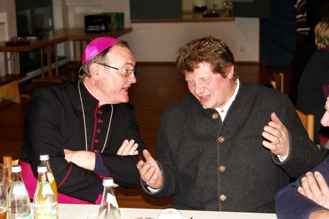 Nach dem Gottesdienst waren die neuen Wortgottesdienstleiter mit ihren Familien zusammen mit den langjährigen Wortgottesdienstleitern in den Flossinger Pfarrstadl eingeladen, wo es Gelegenheit zum ungezwungenen Gespräch untereinander und mit Weihbischof Bernhard Haßlberger gab.