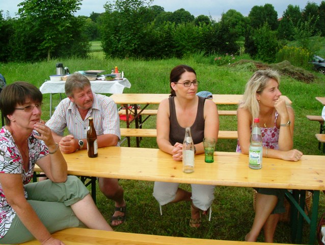 Während die Kinder spielten und das Feuer anfachten, ließen sich die Eltern die mitgebrachten Salate und Grillspezialitäten schmecken.