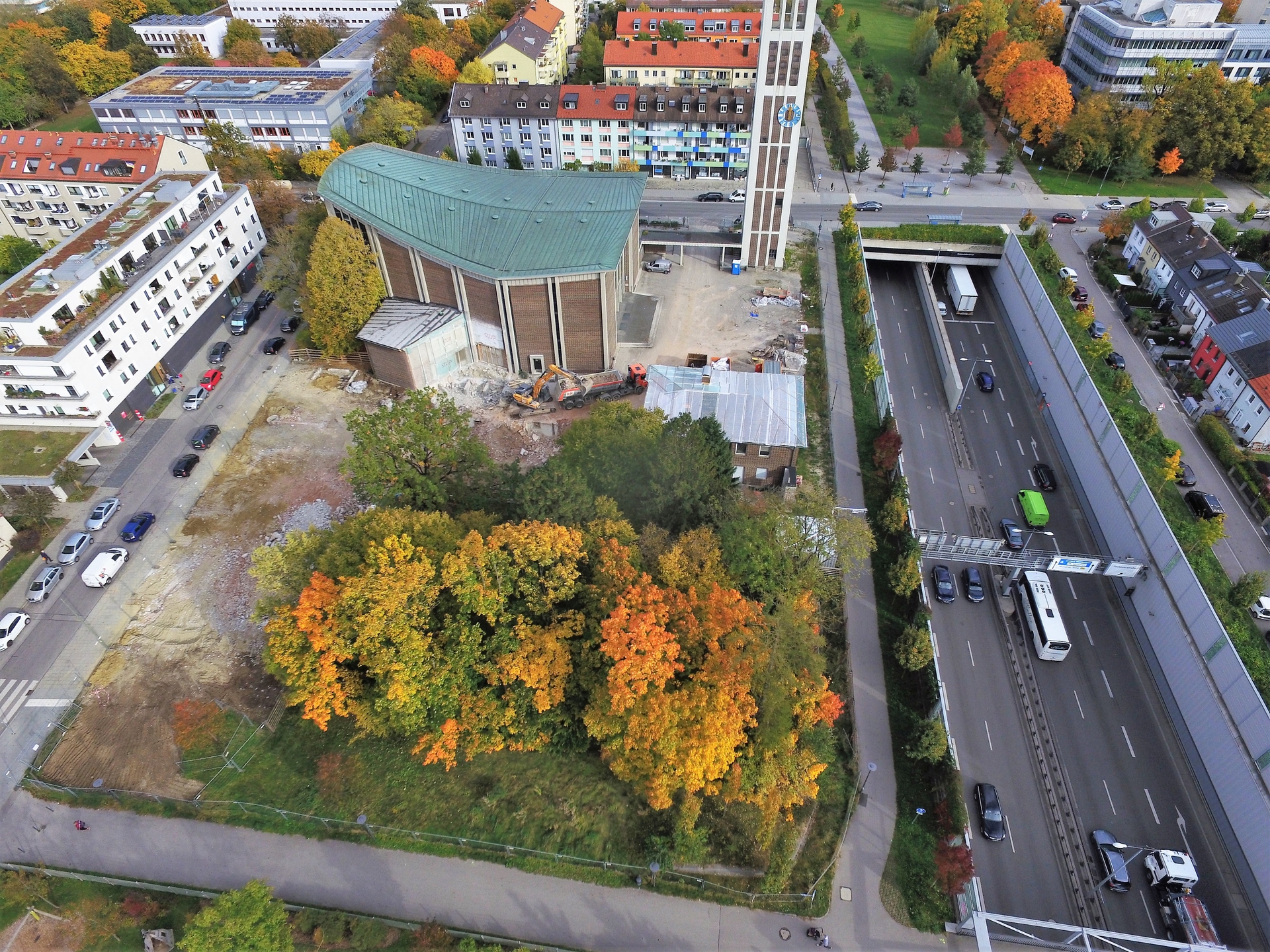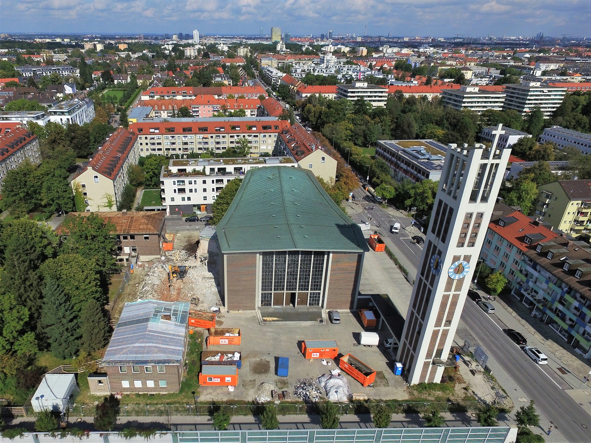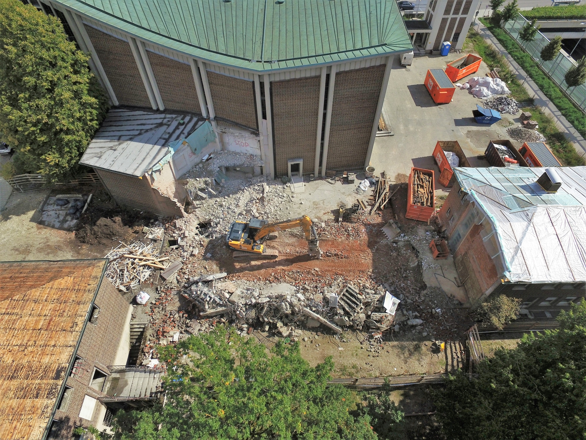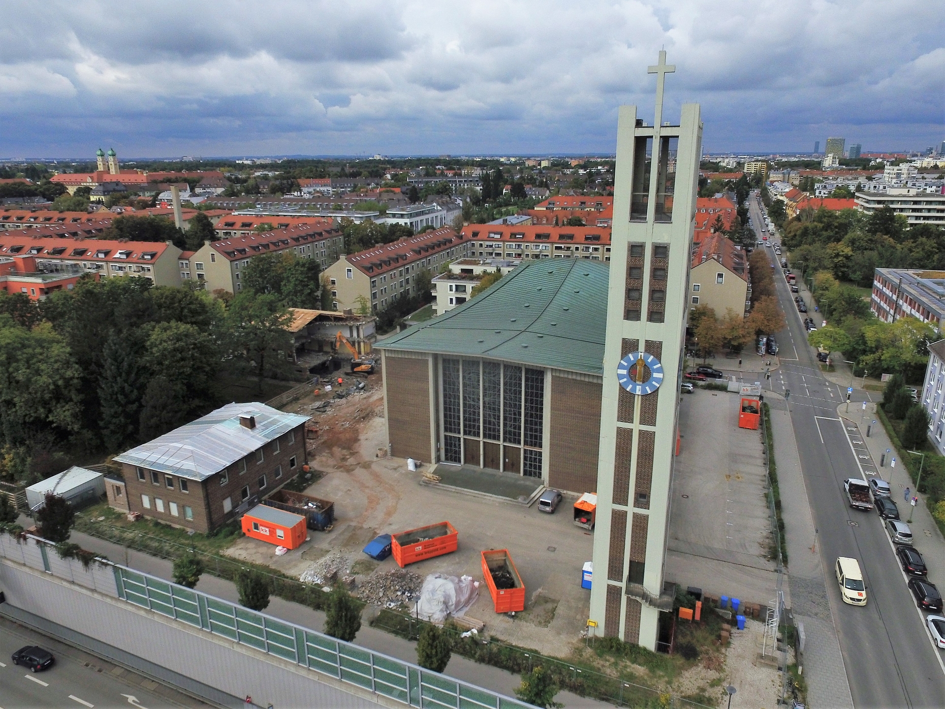 Im Juli 2021 wurde mit dem Abriss von Sekretariat, Sakristei, Jugendräumen, alten Kindergarten und Pfarrsaal begonnen. Im Oktober war der Abriss abgeschlossen und die Baugrube für den neuen Kindergarten ausgehoben.