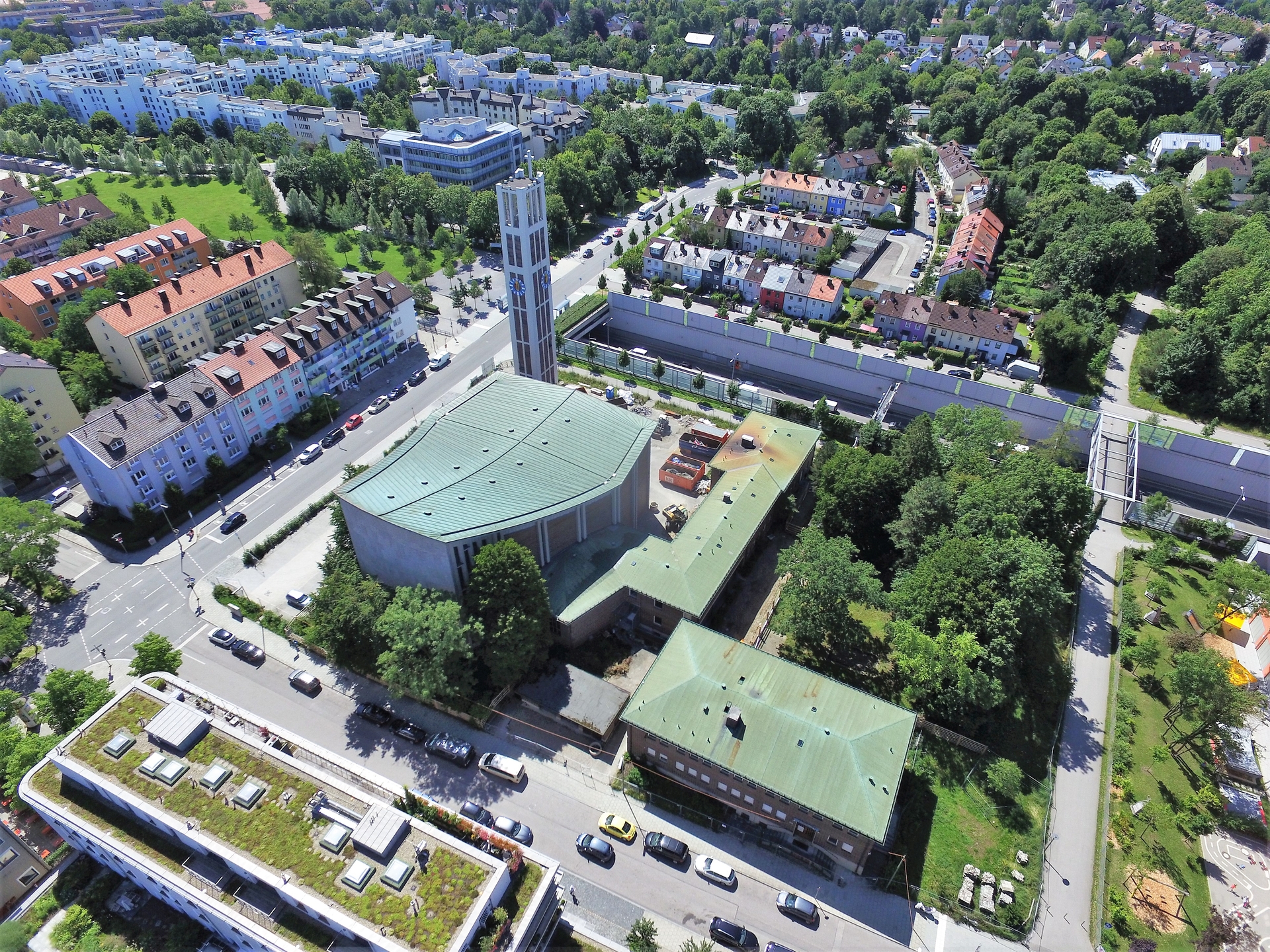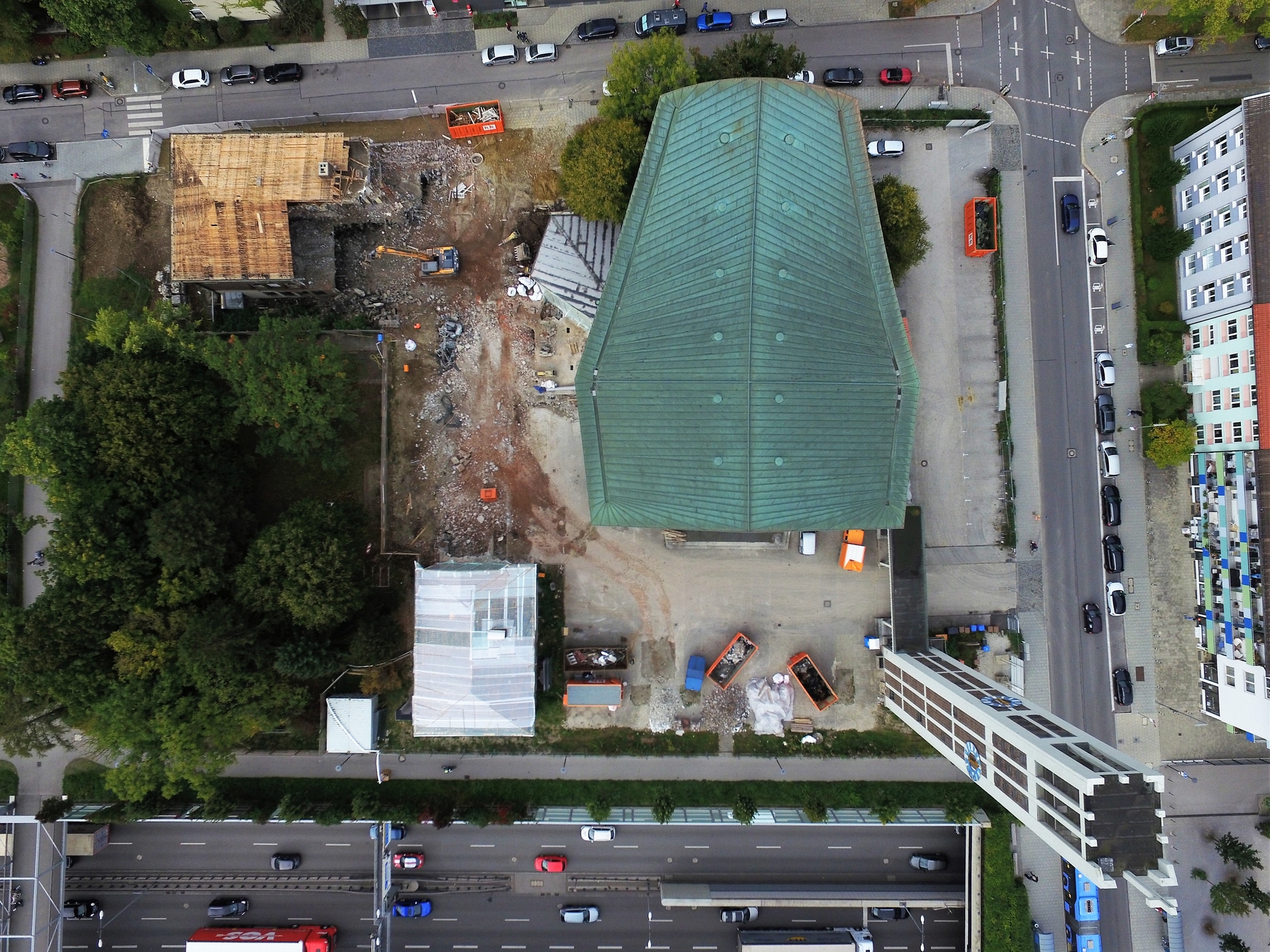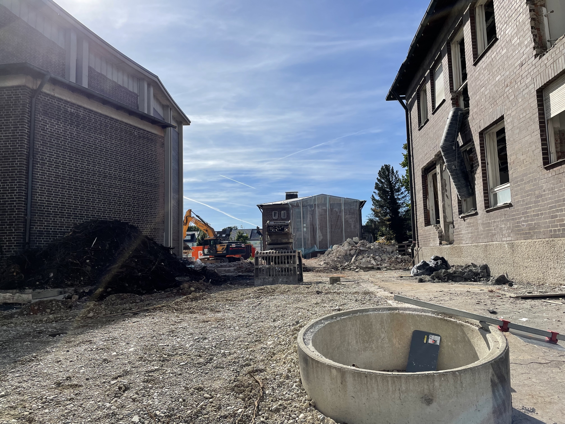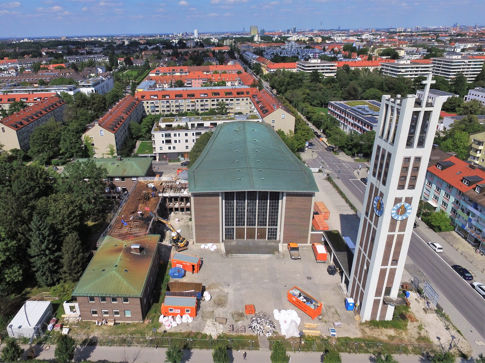 Im Juli 2021 wurde mit dem Abriss von Sekretariat, Sakristei, Jugendräumen, alten Kindergarten und Pfarrsaal begonnen. Im Oktober war der Abriss abgeschlossen und die Baugrube für den neuen Kindergarten ausgehoben.