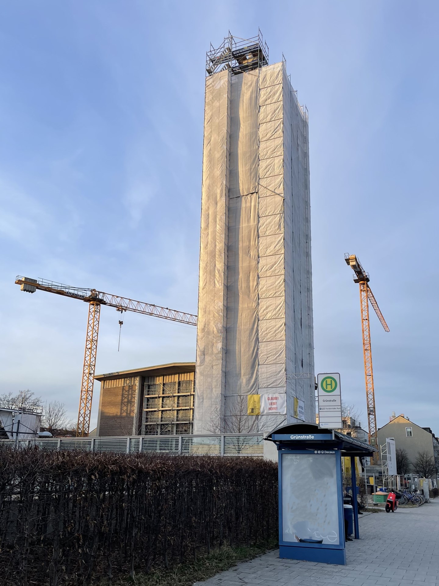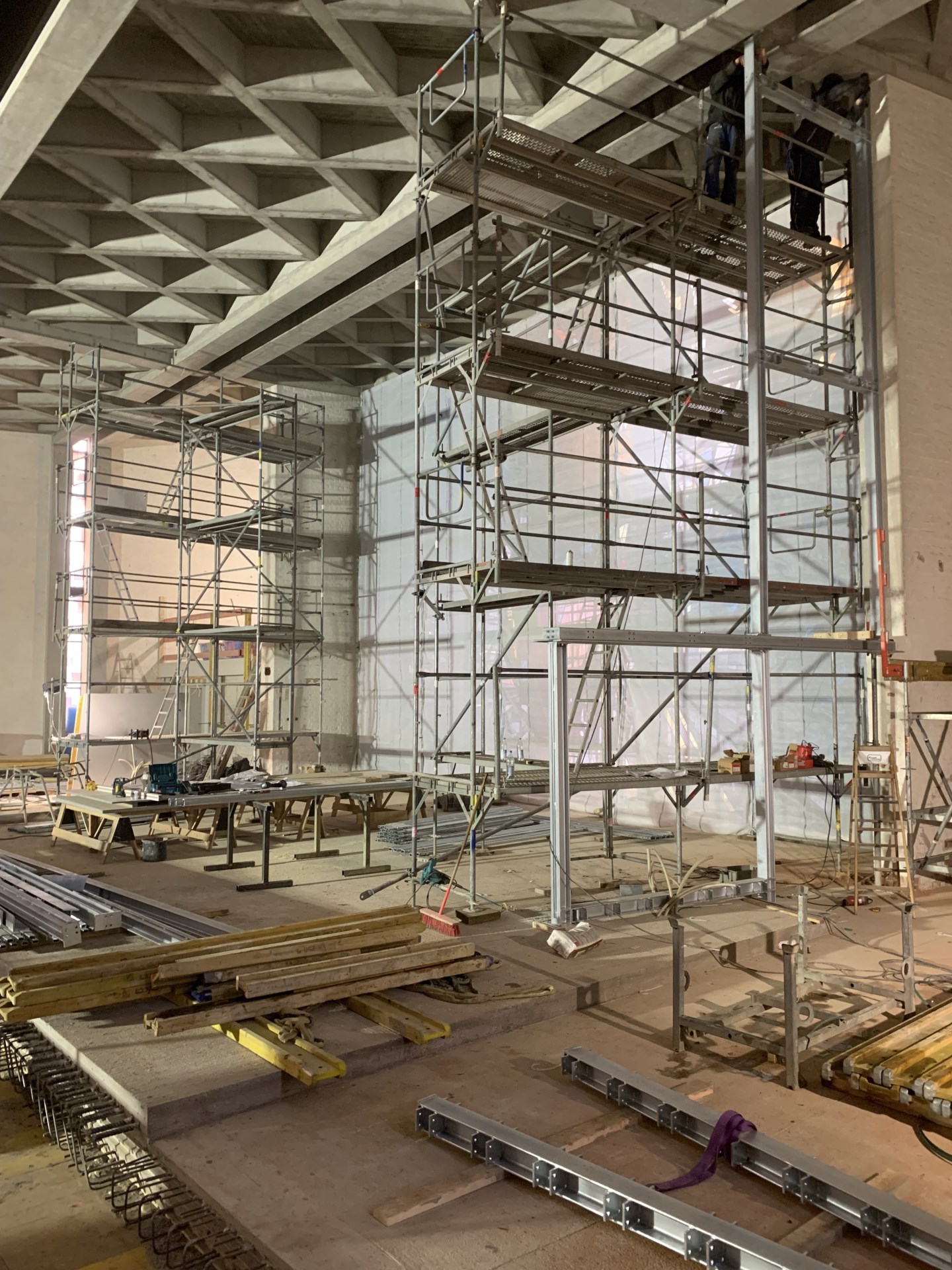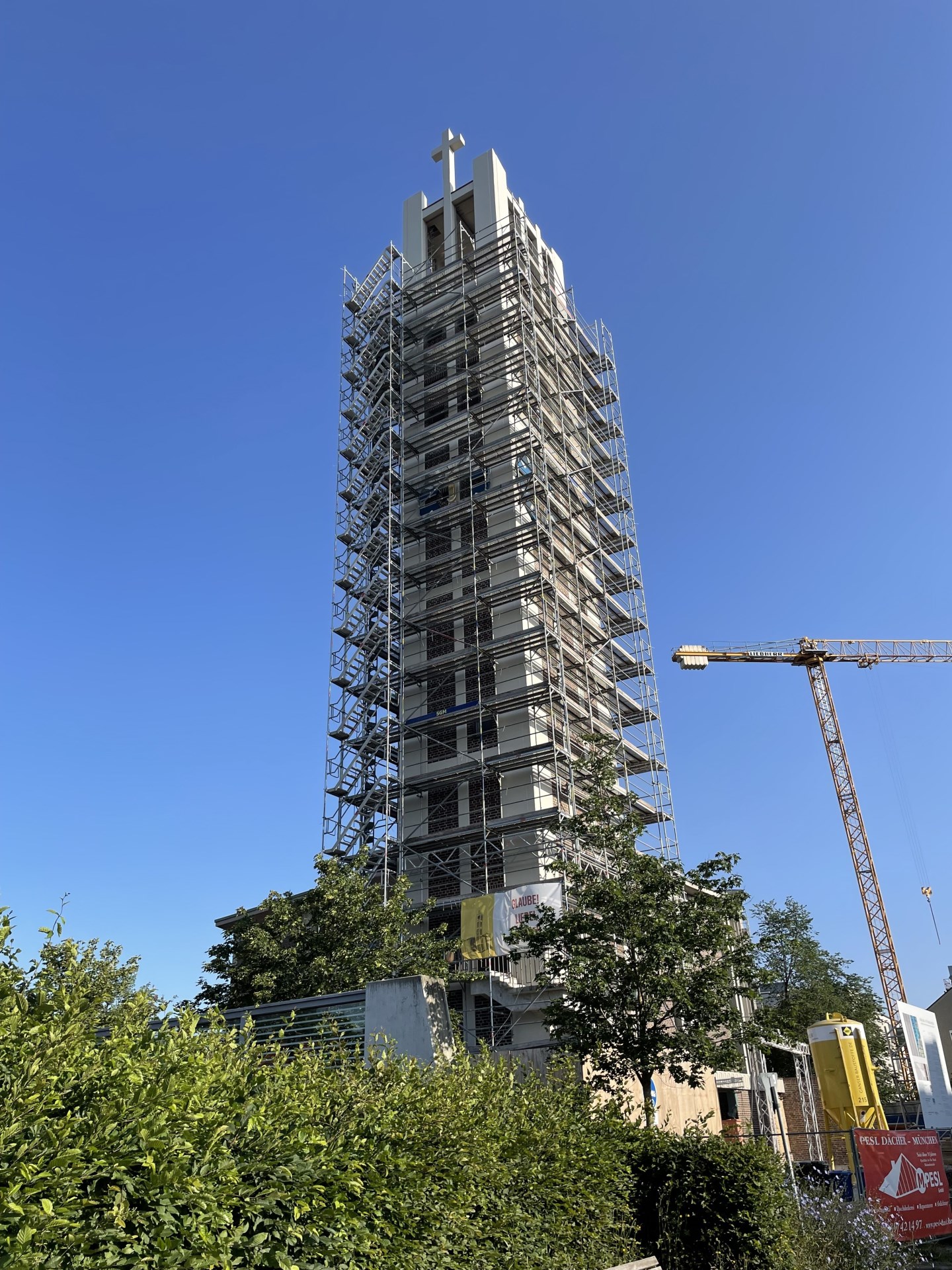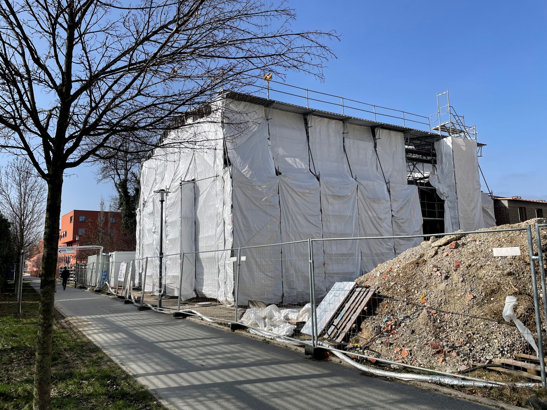 Im Januar 2024 sind die Renovierungen von Kirche, Pfarrheim und Turm in vollem Gange.