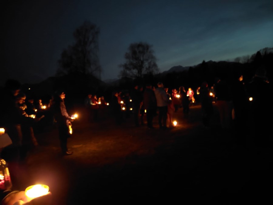 Am Sonntag, 20.03.22, fand um 19 Uhr eine kurze Friedensandacht statt. Vielen Menschen ist es besonders jetzt wichtig, ein Zeichen für den Frieden zu setzen. Das spürte man als sich am vergangenen Sonntag ca. 100 Personen auf den Weg zum Neubeurer See machten. In der Dämmerung und beginnenden Dunkelheit wurde die Andacht begonnen. Wie im Dunkeln fühlen auch wir uns manchmal, wenn wir Nachrichten von Krieg und Gewalt hören und sehen. Die ganze Welt erscheint dann oft dunkel. Doch Gemeindeassistentin Jacqueline Egold erläuterte in ihrer Ansprache, dass jede Hilfe, jedes noch so kleine Zeichen des Friedens und der Hilfsbereitschaft die Welt ein bisschen heller macht. Und damit können wir andere anstecken. So wurde es auch am Neubeurer See heller, denn nun wurden die mitgebrachten Kerzen entzündet. Das Licht wurde weitergegeben und nach und nach erleuchteten hunderte Kerzen die Dunkelheit. Jedes noch so kleine Licht schenkt erlöst uns von der Dunkelheit. Jedes noch so kleine Zeichen schenkt uns Frieden.