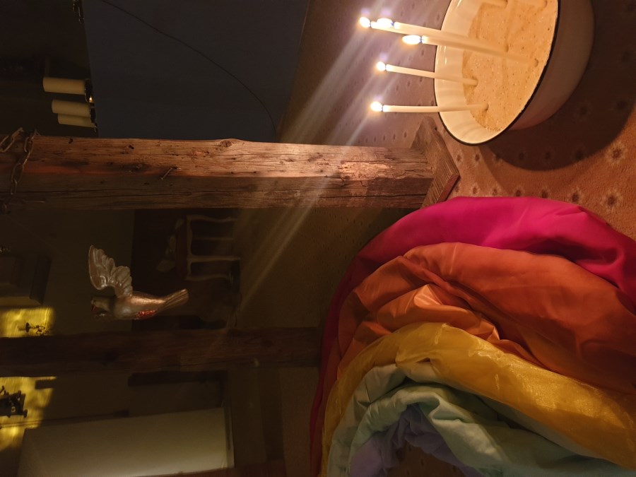 Doch nach dem Festgottesdienst ist es noch nicht vorbei mit Veranstaltungen zum Jubiläum. Am Samstag, 16.07., fand wieder eine „Auszeit“ im Kirchwald statt. Die Andacht war diesmal mit dem Thema „Taizé“ überschrieben. So wurde am Abend viel gesungen und die Atmosphäre der Gemeinschaft im Kirchenraum genossen.