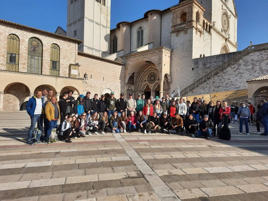 41 Jugendliche aus den Pfarrverbandbänden Riedering und Neubeuern-Nußdorf inkl. zwei Gästen aus Bad Endorf machten sich mit einem Vierer-Leitungsteam auf den Weg nach Umbrien in die Stadt des Heiligen Franziskus. Allesamt frisch getestet war schon die Anfahrt ein Aufatmen nach über zwei Jahren Pandemie. In einem Pilgerhotel mitten in der Altstadt untergebracht konnte Assisi zu Fuß entdeckt werden. Gemeindereferent Tobias Gaiser, Gemeindeassistentin Jacqueline Egold, sowie die ehrenamtlichen Leiter Annette Forster und Christian Unterhuber brachten den Jugendlichen das Leben und die Spiritualität des Heiligen Franziskus und der Heiligen Klara näher und so konnte in kleinen Gottesdiensten und Andachten immer mehr Bezug zum eigenen Leben hergestellt werden. Bruder Thomas, der im Sacro Covento lebt, erklärte die Basilika und die Fresken Giottos und eine kleine, aber schweißtreibende Bergtour zur Einsiedelei Carceri schufen immer mehr Bezug zwischen den Jugendlichen und dem besonderen Geist, der in und um Assisi herrscht. Wenn auch das Wetter leider einen Ausflug an und auf den Trasimeno See nicht möglich gemacht hat, konnte man beobachten, dass die Jugendlichen ihren eigenen Lebensfragen und einem franziskanischen Denken immer wieder einen guten Platz eingeräumt haben. Viele haben Zuhause die Gruppe über die sozialen Medien virtuell begleitet und sogar Weihbischof Wolfgang Bischof schickte den Jugendlichen zweimal via Instagramkommentar einen Gruß. Ein Abschlussgottesdienst konnte zum Ende noch im Sacro Convento gefeiert werden und jede und jeder Teilnehmende bekam ein Tau-Kreuz umgehängt verbunden mit einem ganz persönlichen und individuellen Zuspruch - dies am Ende verbunden mit dem Franziskanischen Segen: "Möge Gott dich mit genug Torheit segnen zu glauben, dass du einen Unterschied in der Welt machen kannst." Es tat gut zu sehen was im Laufe dieser paar Tage unter und zwischen den Jugendlichen gewachsen ist und es ist gut und wichtig, dass so etwas jetzt wieder möglich ist.