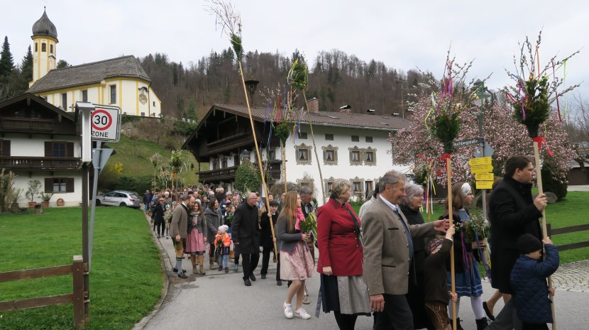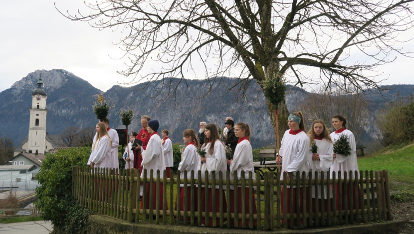 Nach der Palmprozession zur Pfarrkirche Hl. Kreuz, angeführt von der Musikkapelle Kiefersfelden, wurde in der Heiligen Messe zum Palmsonntag die Leidensgeschichte nach Matthäus vorgetragen.