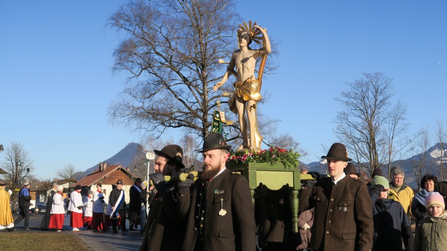 Zum Festtag in diesem Jahr versammelten sich wieder Vereine mit den Fahnenabordnungen zum Gottesdienst. Der Schützenverein sorgte mit Salutschüssen vor der Kirche für Aufmerksamkeit. Musikalisch begleiteten die Bläser das festliche Geschehen in der Kirche. Nach der Gottesdienstansprache von Pfarrer Huber ging es in einer Prozession zur Sebastianikapelle und zurück. Zum Abschluss erhielten die Versammelten am Eingang zur Kirche Gottes Segen.